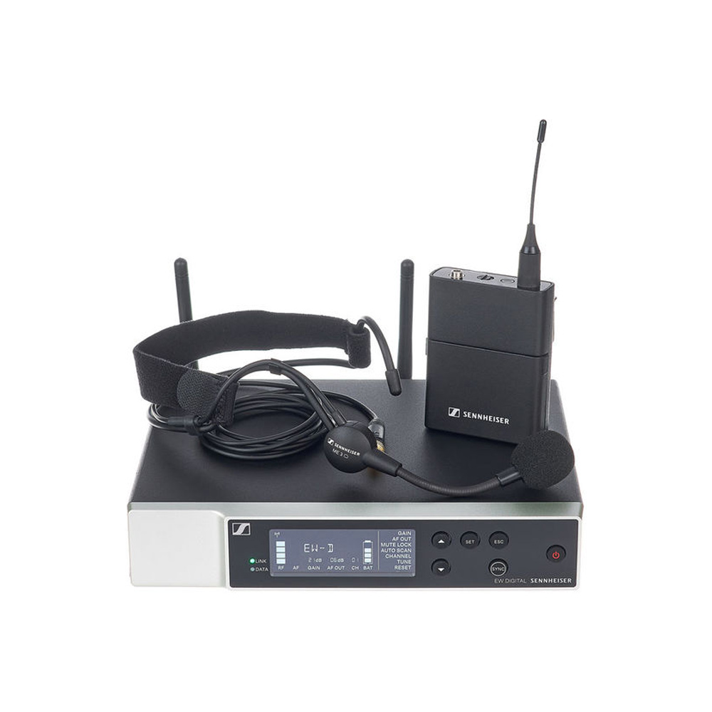 A versatile digital wireless system with a wide range of features for singers, speakers, or musicians, allowing for seamless device pairing and control through the EW-D Smart Assist app. The robust bodypack transmitter with a metal casing and the ME 3 head microphone (cardioid), which ensures high speech intelligibility, are perfect for daily use on stage.