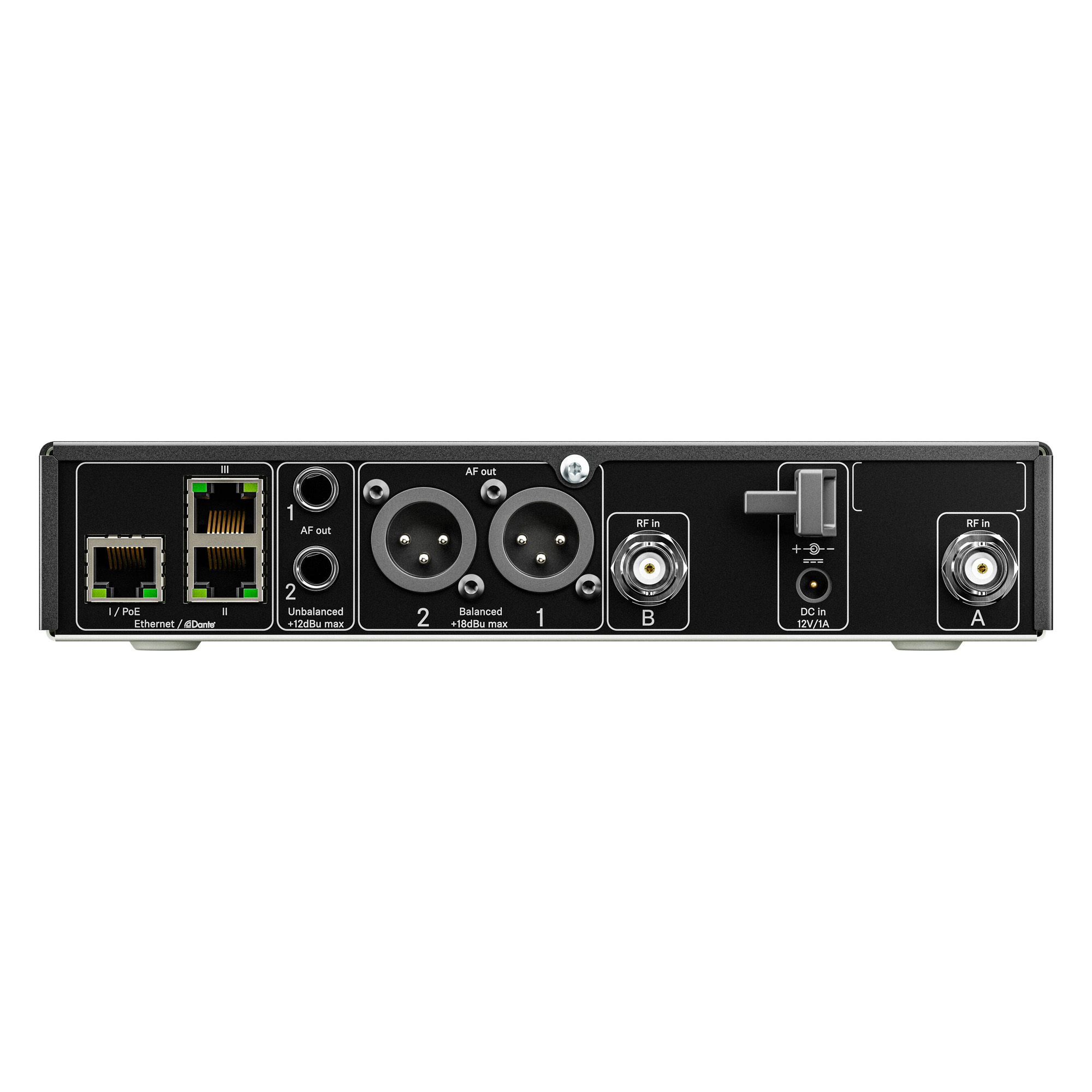 - Half-rack dual-channel digital wireless receiver, compatible with EW-DX bodypack transmitters, handheld transmitters, and table stand transmitters