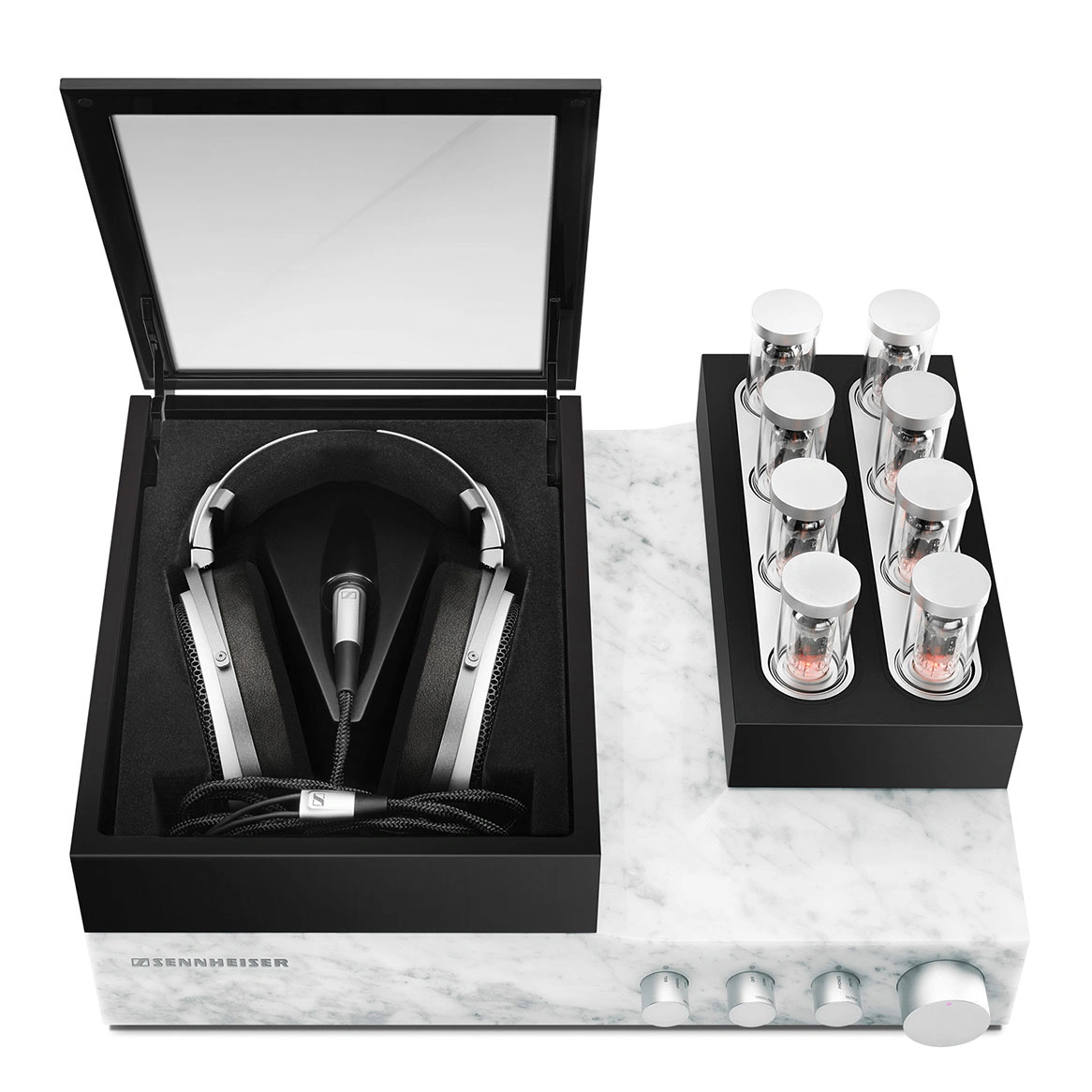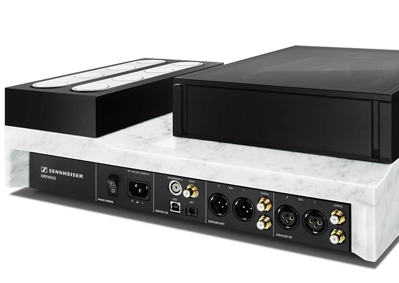 The Sennheiser HE 1 (patent pending) innovative technology incorporates all the advantages of tube and transistor amplifiers. Vacuum tubes are secured on an anti-vibration housing made of granulated marble to eliminate any impact from contact noise, and the tubes are enclosed in high-quality quartz glass caps that perfectly isolate them from the surrounding environment. This guarantees extremely precise processing of the impulse signal with minimal distortion.