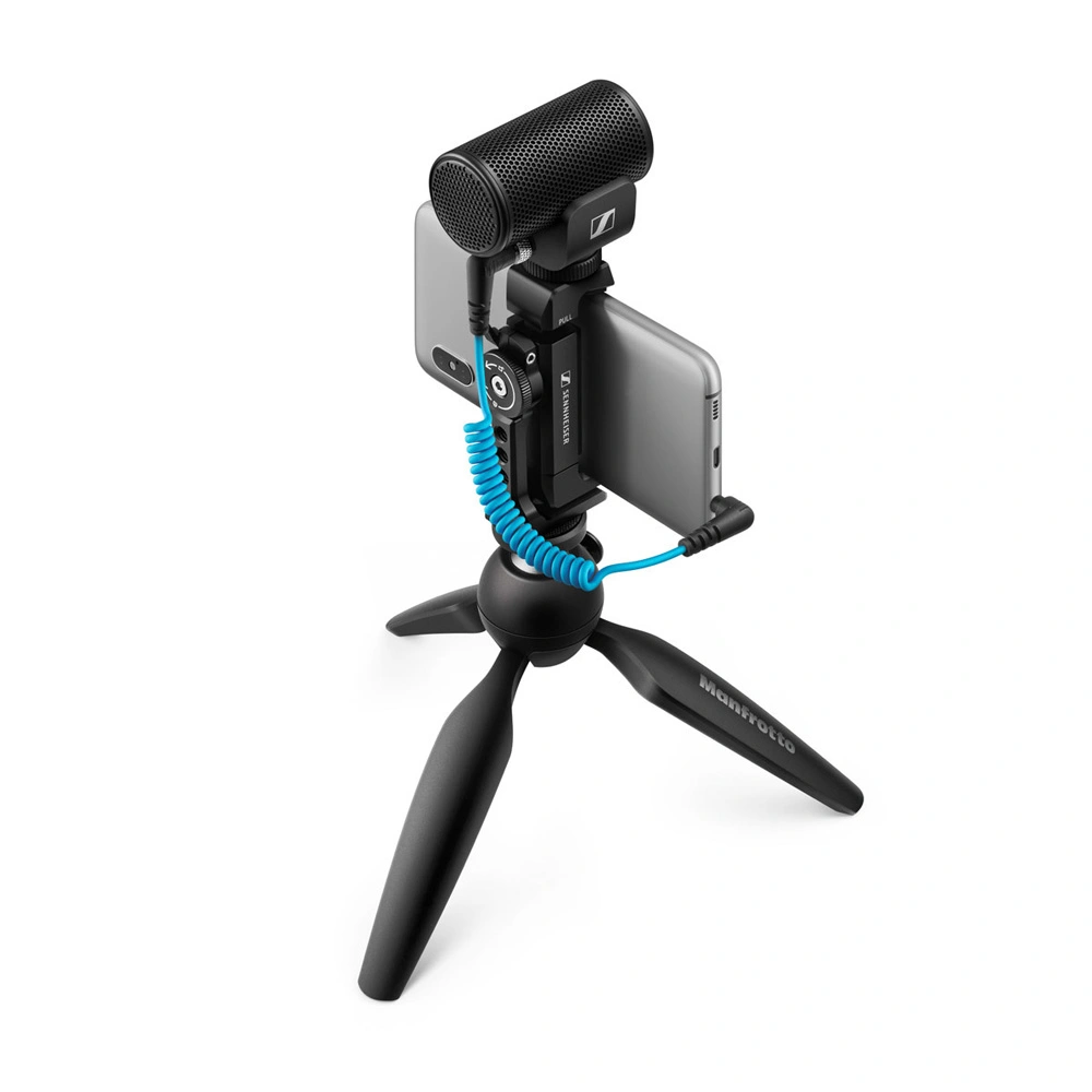The Sennheiser MKE 200 Mobile Kit is specially designed for modern vloggers and streamers, as well as amateur operators who shoot a lot, frequently, and in various conditions, including mobile mode. The kit includes everything needed to record stable video and clear audio on a smartphone: the Sennheiser MKE 200 on-camera microphone, the Manfrotto PIXI Mini Tripod, and the Sennheiser Smartphone Clamp.