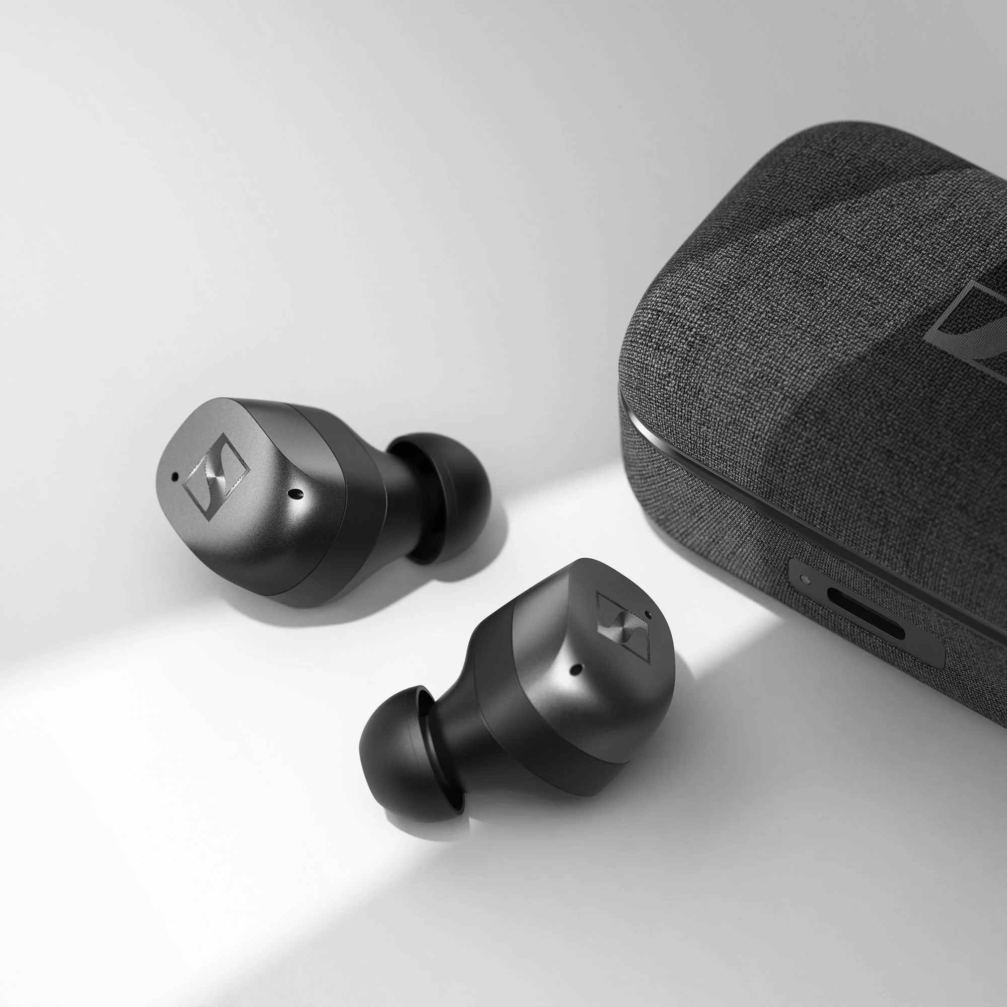 MOMENTUM True Wireless 4 matches progressive features with timeless, finely crafted design and Sennheiser quality. Available in Black Graphite, White Silver, and Black Copper, their minimalist aesthetic is elevated by premium material such as textile and metallic finishes. Enjoy a truly special listening experience in style.
