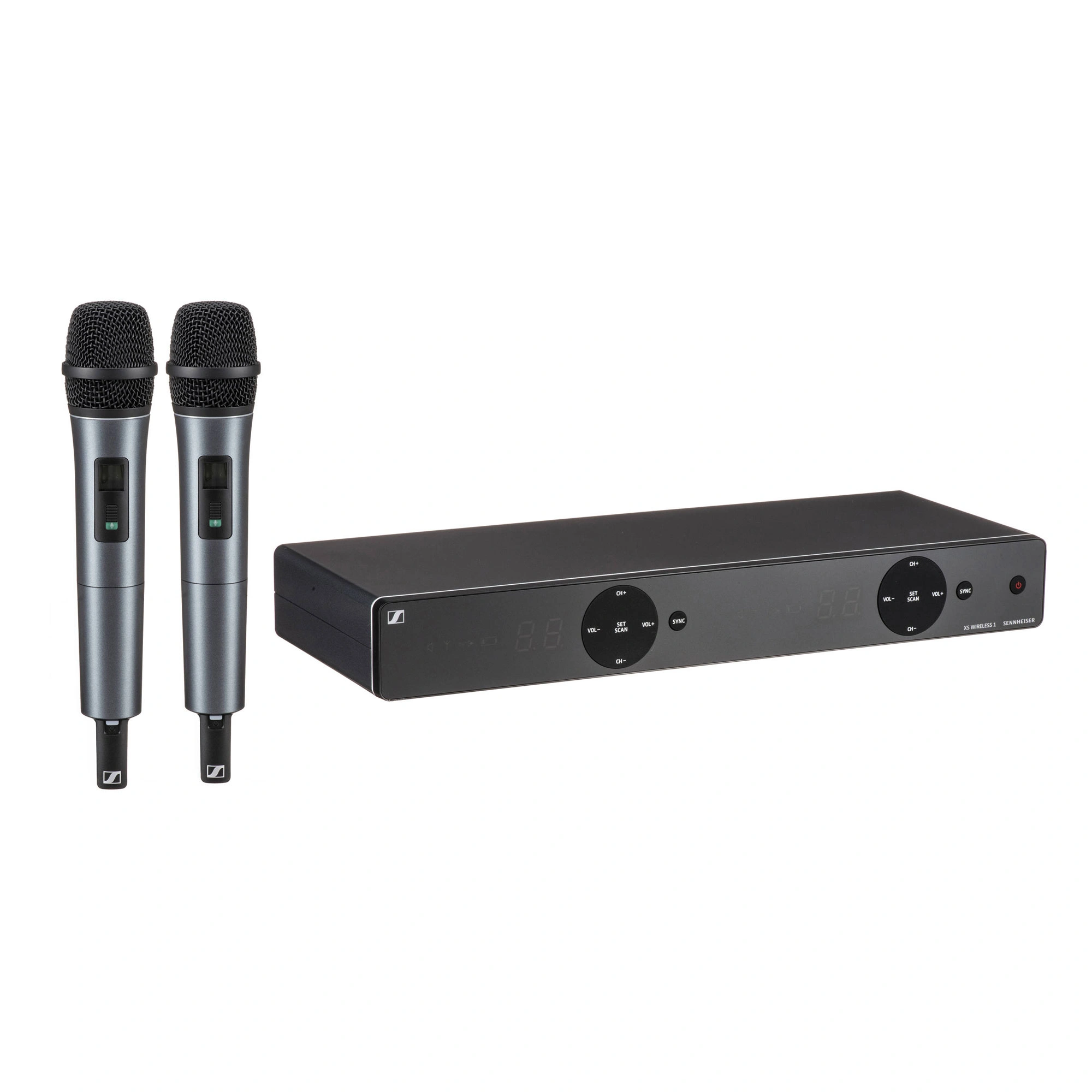 The Sennheiser XSW 1-835 Dual B-Band is a 2-channel wireless system that includes the EM-XSW 1 DUAL receiver and a pair of SKM 835-XSW handheld transmitters. It is a user-friendly solution for vocalists and presenters, providing high-quality sound. The operating frequency range is 614-638 MHz, and it can support up to 10 compatible channels. The receiver is equipped with built-in antennas and has a convenient control interface.