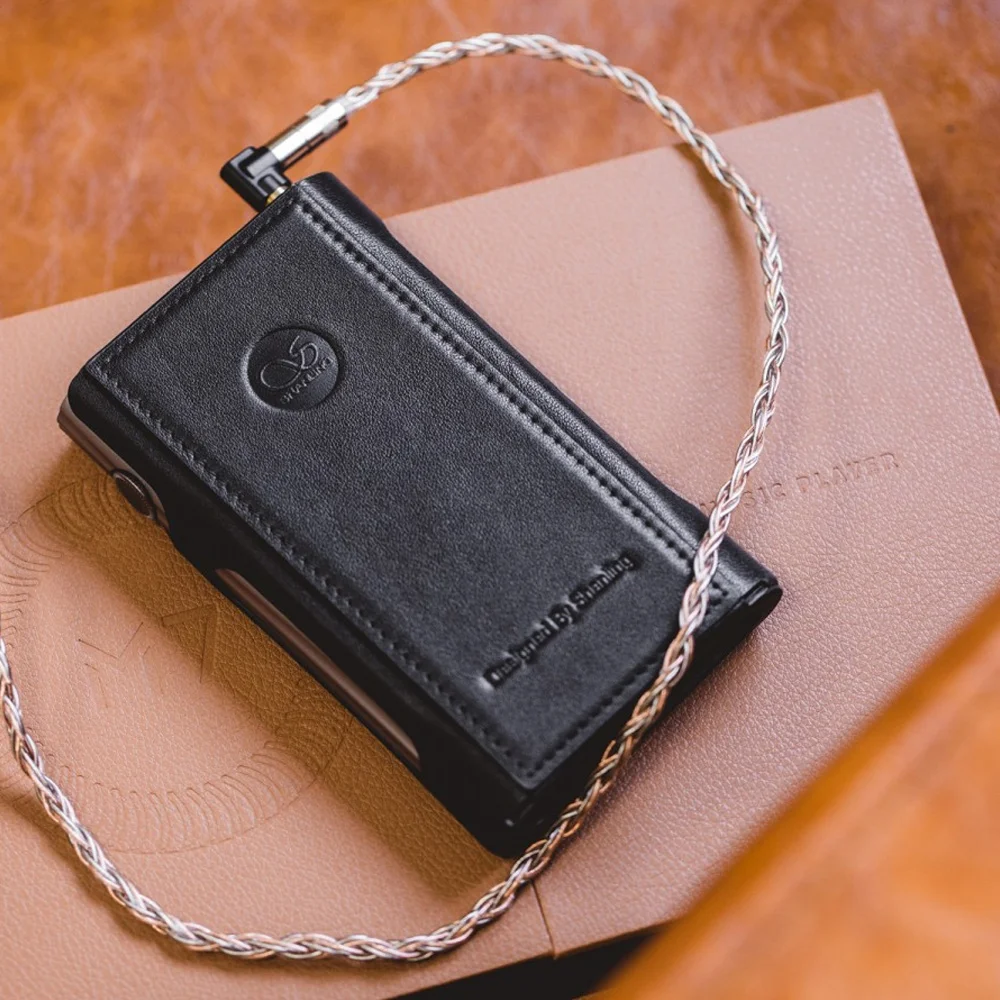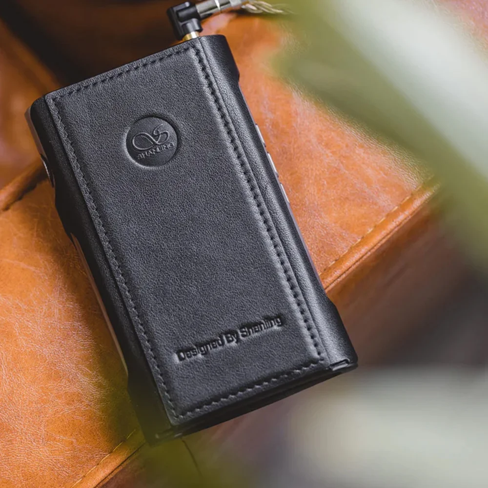 Shanling M7 Leather Case - a leather case for the Shanling M7 player. Made from genuine leather, dyed in premium black color. The soft leather and integrated metal frame provide good protection against mechanical impact, while the convenient design ensures easy access to ports and device controls.