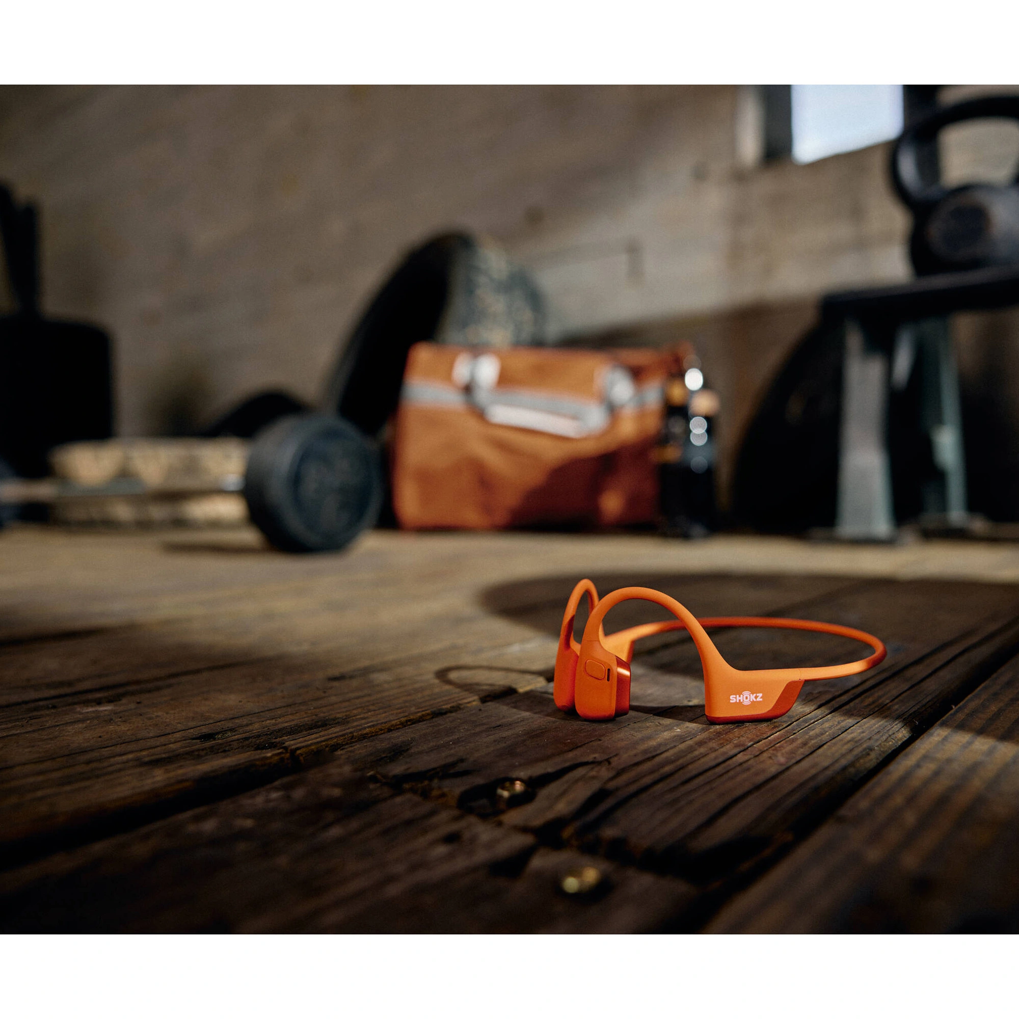 Immerse yourself in 3D sound while on the move with OpenRun Pro 2 Mini (Orange) from Shokz, unique headphones with a hybrid bone conduction and open-ear design to minimize sound bleed. With DRC technology and two specialized mics for clear calls, these sport headphones offer killer sound while keeping you connected to your surroundings.