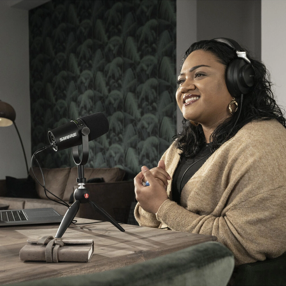 Enhanced compatibility. Compatible with almost any device, the MV7 easily integrates into an existing setup, whether it's content creation in a home studio or on-the-go recording. The microphone offers a professional XLR output for use with interfaces, mixers, and professional audio equipment, making it an ideal multi-purpose solution for podcasting, radio, gaming, voice-overs, and sound recording studios.