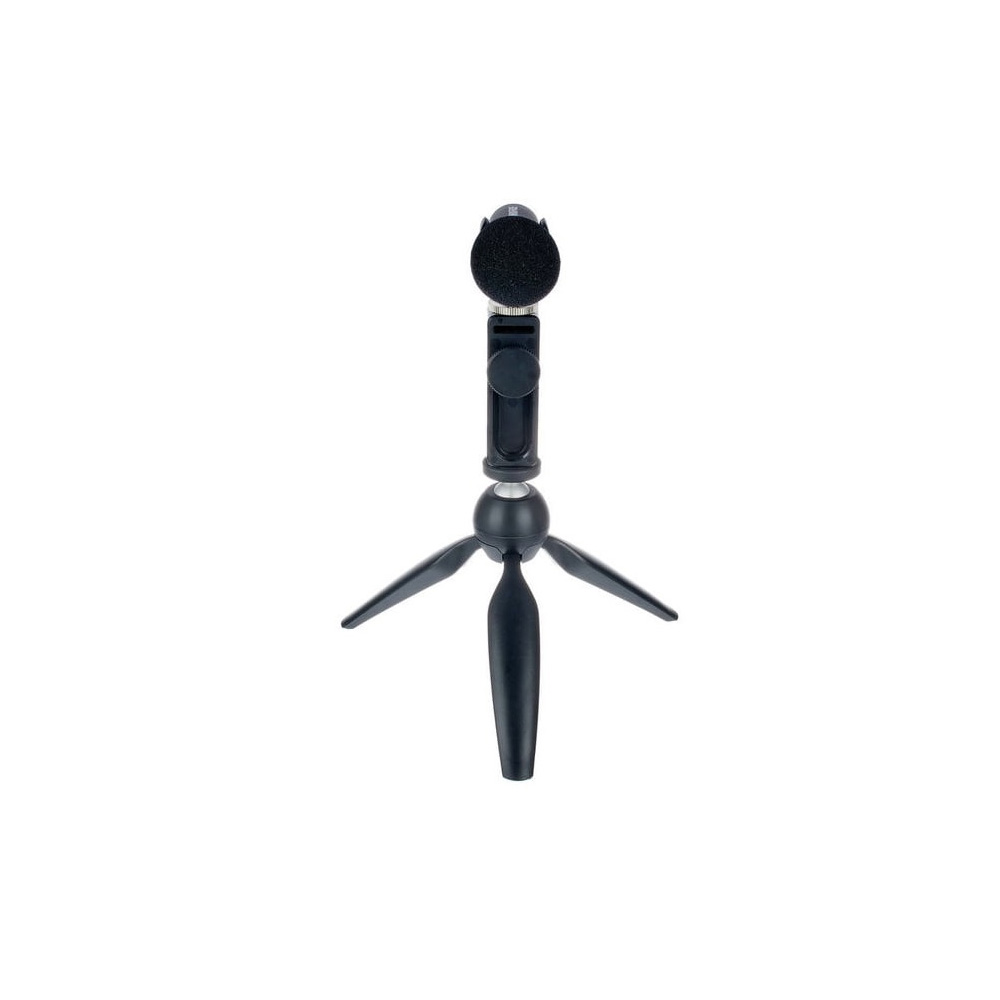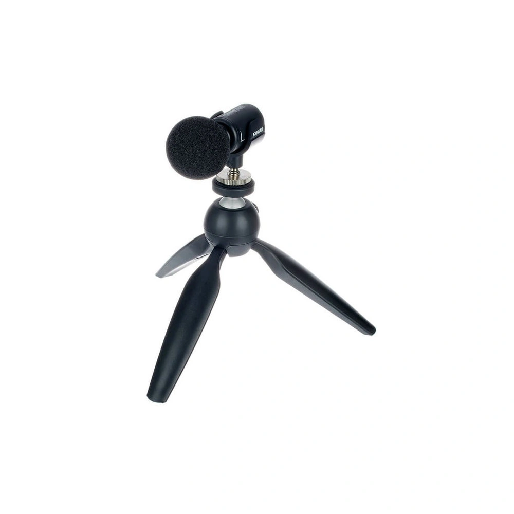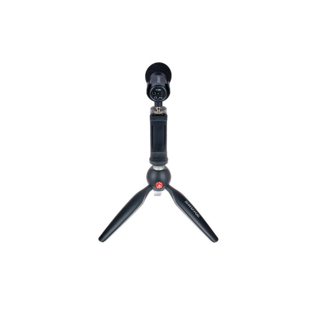 The Shure MV88+ is an incredibly convenient microphone for use in almost any conditions. The tabletop mini tripod with three foldable legs and a phone clamp with adjustable width, included in the package, offers multiple positioning options suitable for various tasks.