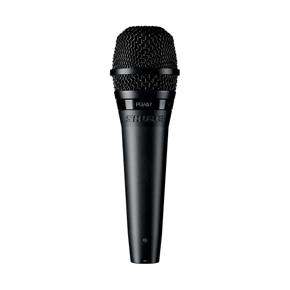 The PGA57 is a dynamic instrument microphone with a cardioid directional pattern, designed for recording and capturing sound from combo amplifiers, toms, and snare drums. It also works well with brass instruments. The kit includes a holder for mounting the microphone on a stand.