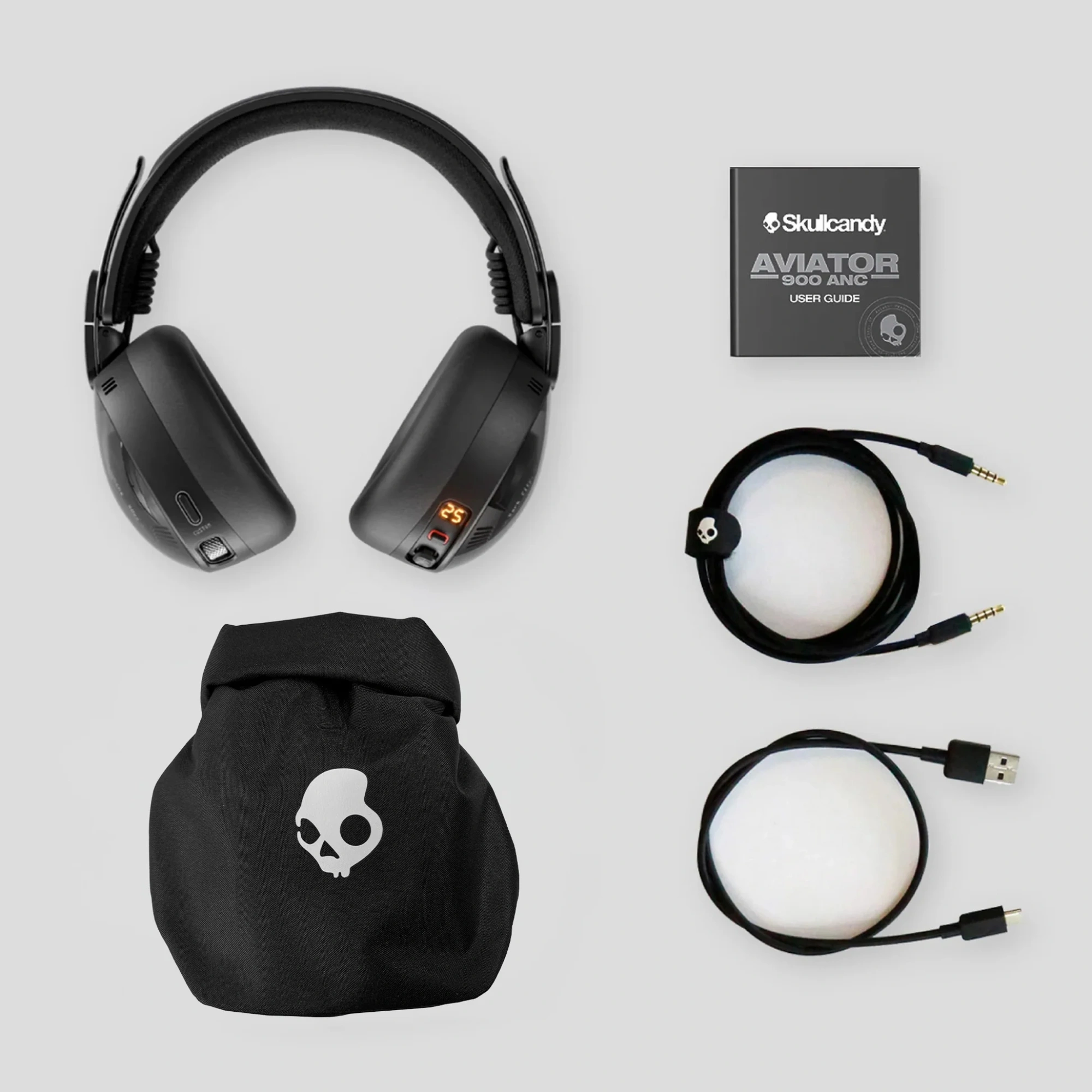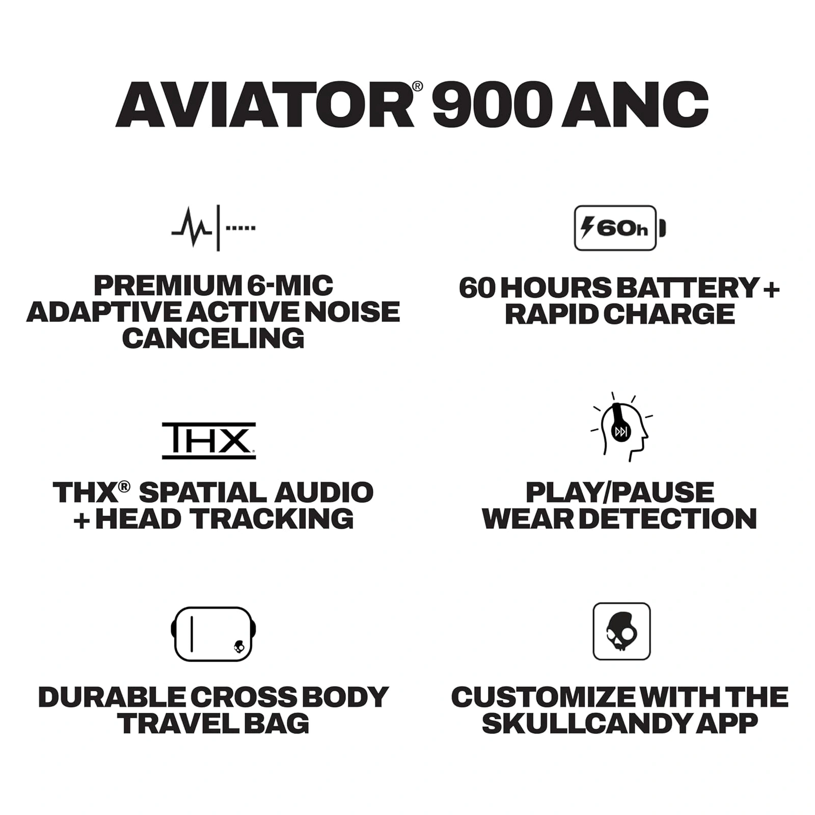 Immerse yourself in 360° audio soundscapes, premium adaptive noise canceling and cutting-edge performance and features. Wrapped in unrivaled comfort and an iconic, retro-inspired design, Aviator 900 ANC sets a new standard for luxury listening — effortless, elevated, and unmistakably Skullcandy.