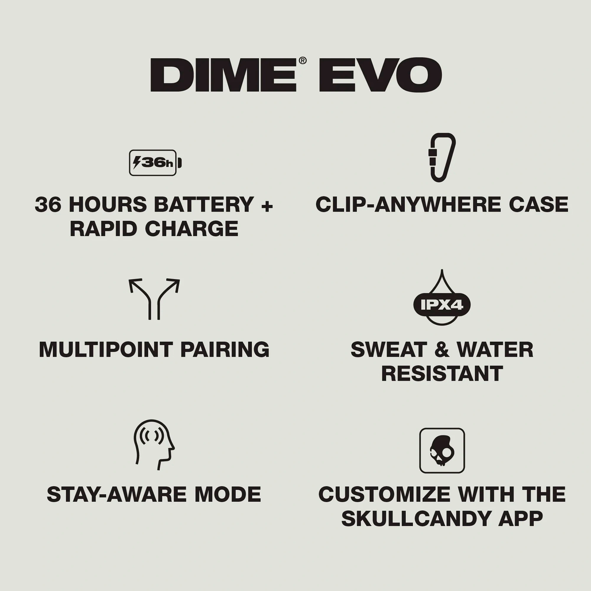 Skullcandy Dime Evo True Wireless — small size, big sound, smarter features. Built for how you live, listen, and move.