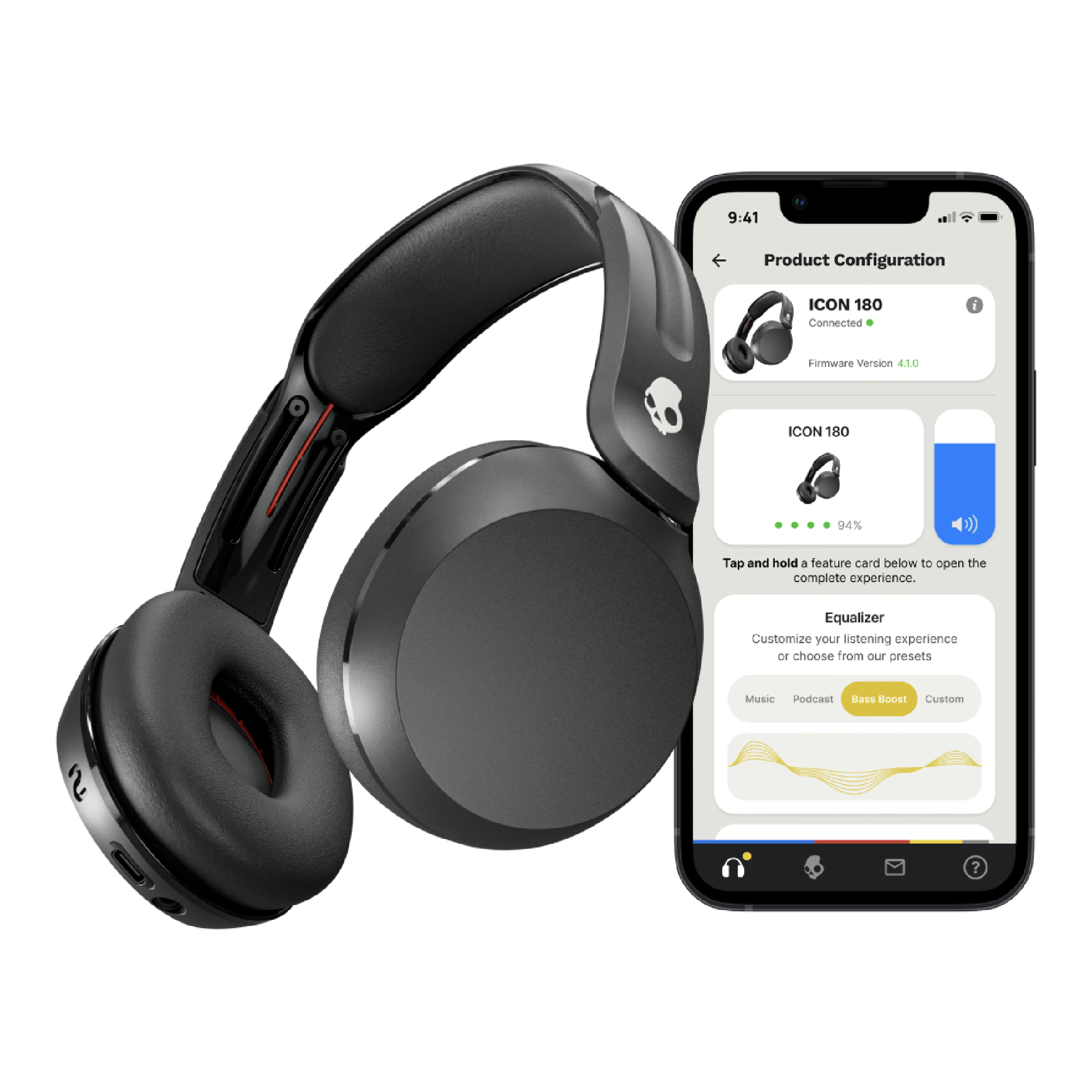 Download and use the Skullcandy App to customize EQ or select from EQ presets, enable Low Latency Audio, and more.