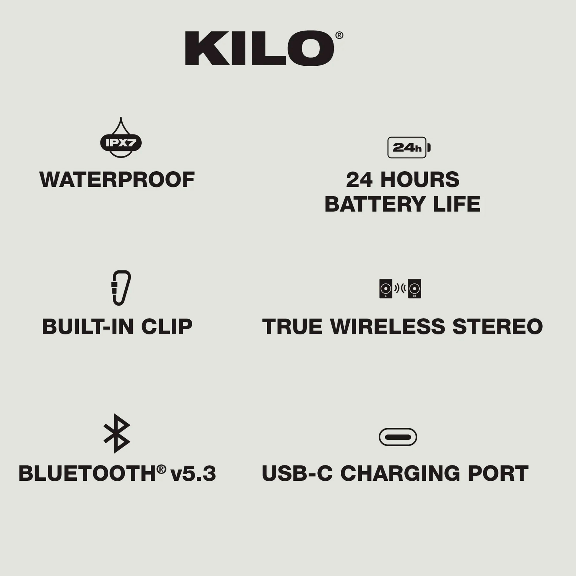 Enjoy non-stop music for a full day with the Kilo Speaker's long-lasting battery. Perfect for all your summer must-haves, including camping, boating, kayaking, and more.