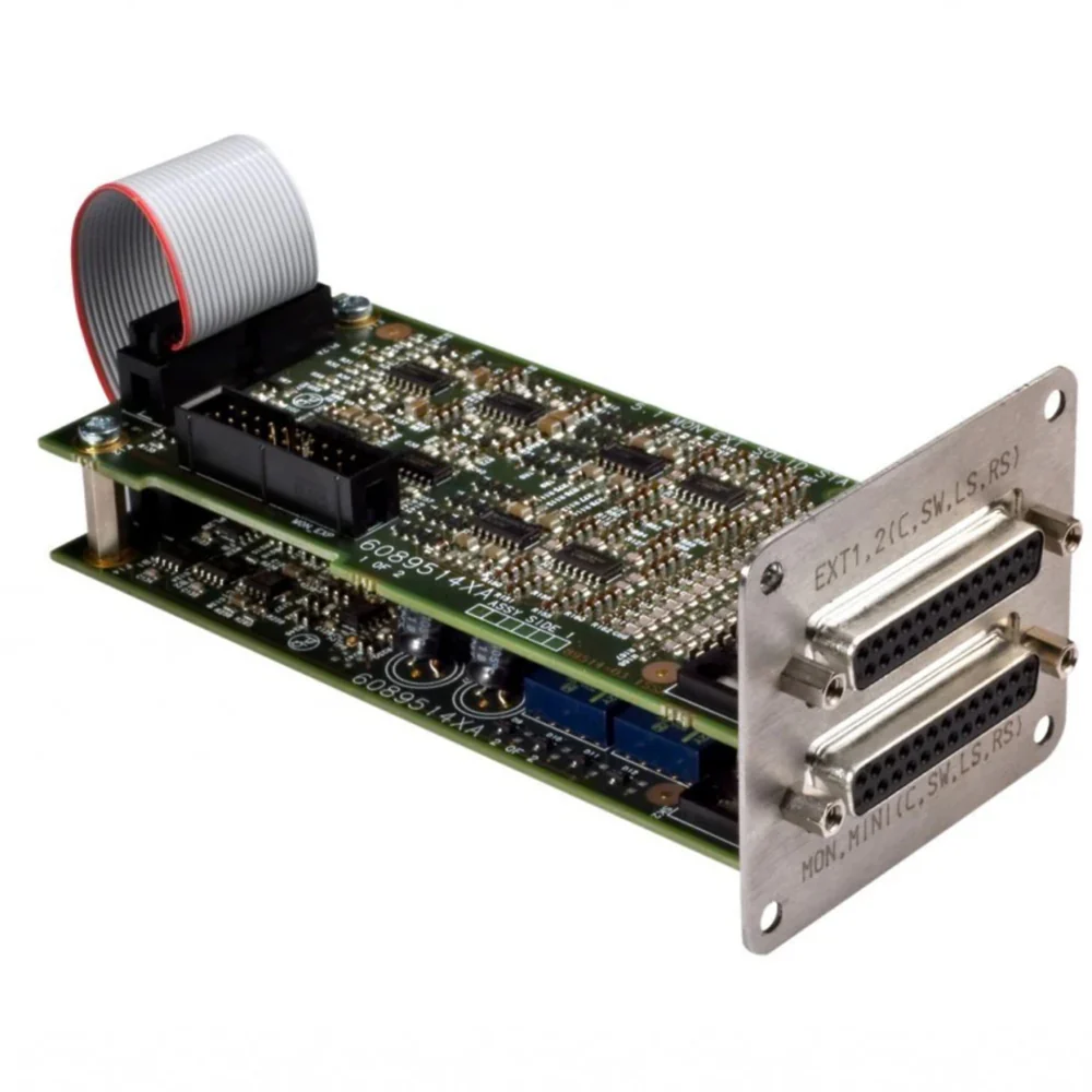 The SSL Matrix Surround Monitor board converts inputs from external audio sources EXT A and B from stereo to 5.1, and the stereo monitor outputs to two 5.1 outputs. This provides 2 input channels for monitoring 5.1 and 2 sets of 5.1 speakers for switching between them and controlling with the central Matrix section.