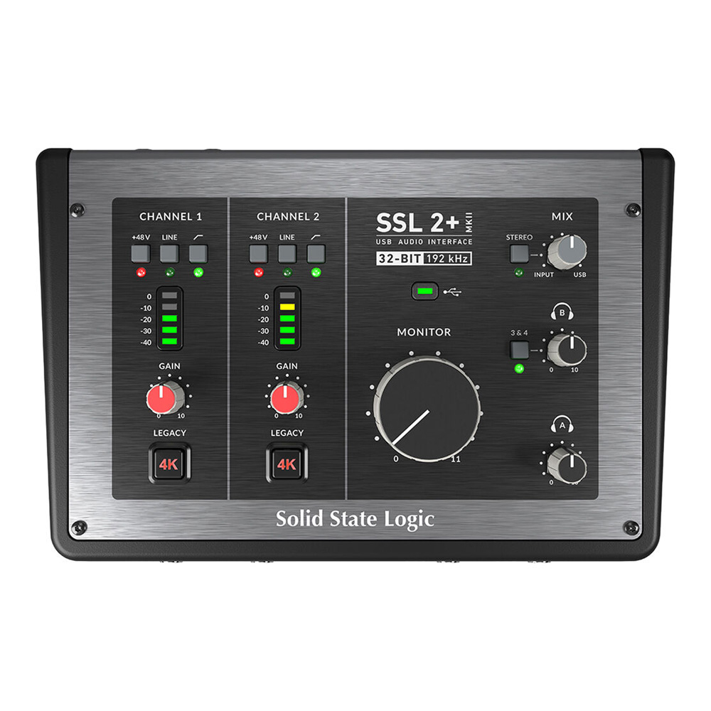 With convenient microphone and instrument connections, including automatic DI input detection for instruments, SSL 4K analog technology to give your tracks a unique sound, and zero-latency monitoring for convenient performance recording, the SSL 2 MKII allows songwriters and performers to quickly create superb-sounding demos - up to ready-to-stream tracks. And for live performances, the SSL 2+ MKII also features line outputs with DC connectivity for transmitting control voltage (CV) to synthesizers, connecting the studio and the stage.
