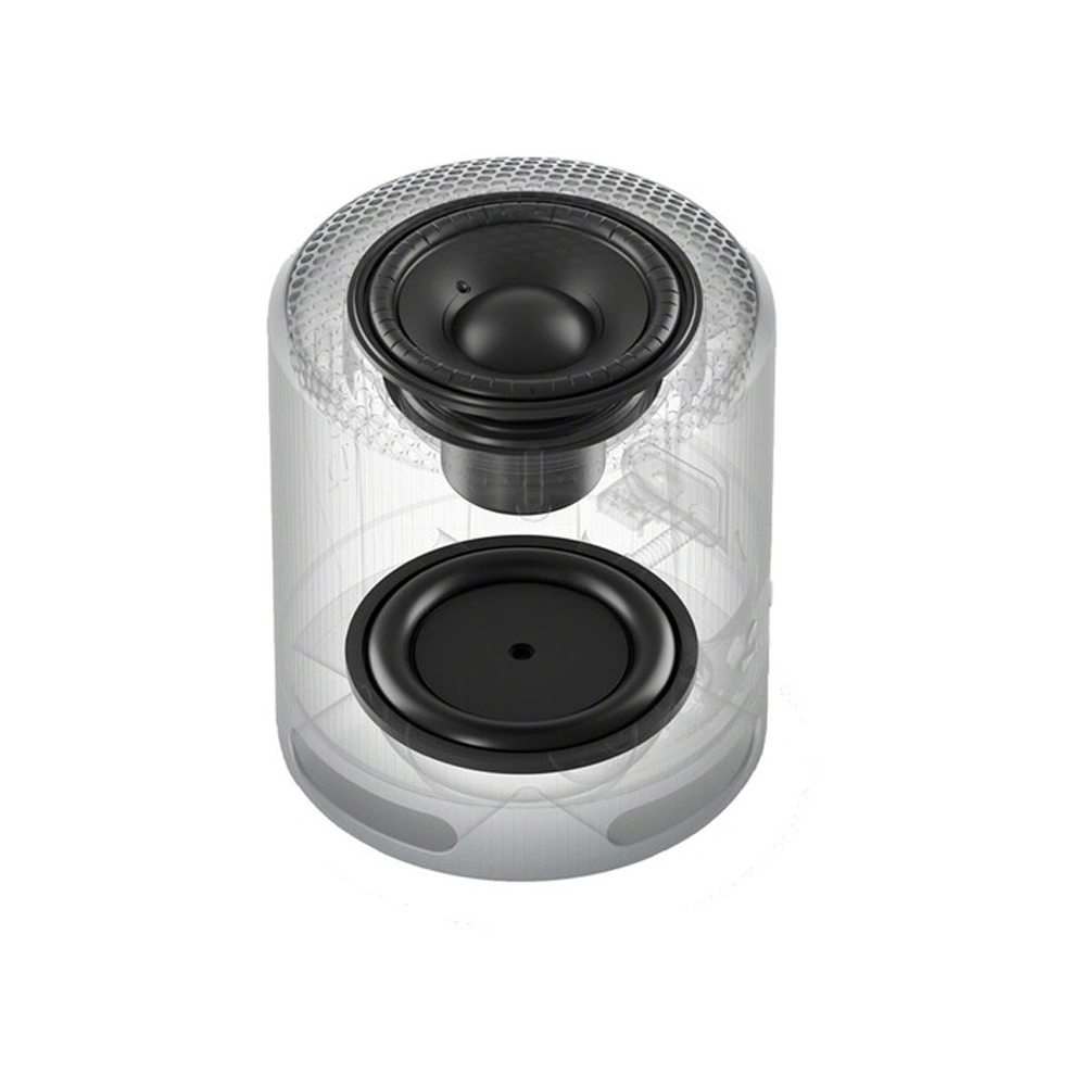 The passive radiator and wide range speaker enhance the low frequencies, increasing bass power.