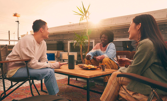 When fully charged, the XE300 speaker provides 24 hours of playback, so one charge is enough for any party. Don't worry if you don't have time to fully charge the device. Just 10 minutes of quick charging will give you 70 minutes of play time. The Battery Care function helps avoid excessive charging and keeps the battery in optimal condition. And Sony's unique noise recognition technology, using a microphone, saves battery life when outside.