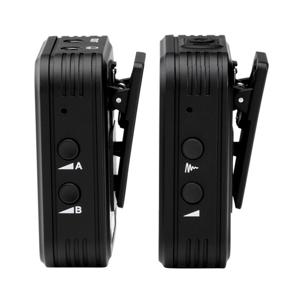Pressing the receiver power button can activate the safety channel mode. The right track will record sound 6 dB lower to avoid unexpected sound spikes due to external factors like vehicles or weather. This ensures the preservation of your audio recording under any circumstances. An external lavalier microphone is included for discreet low-profile recording.