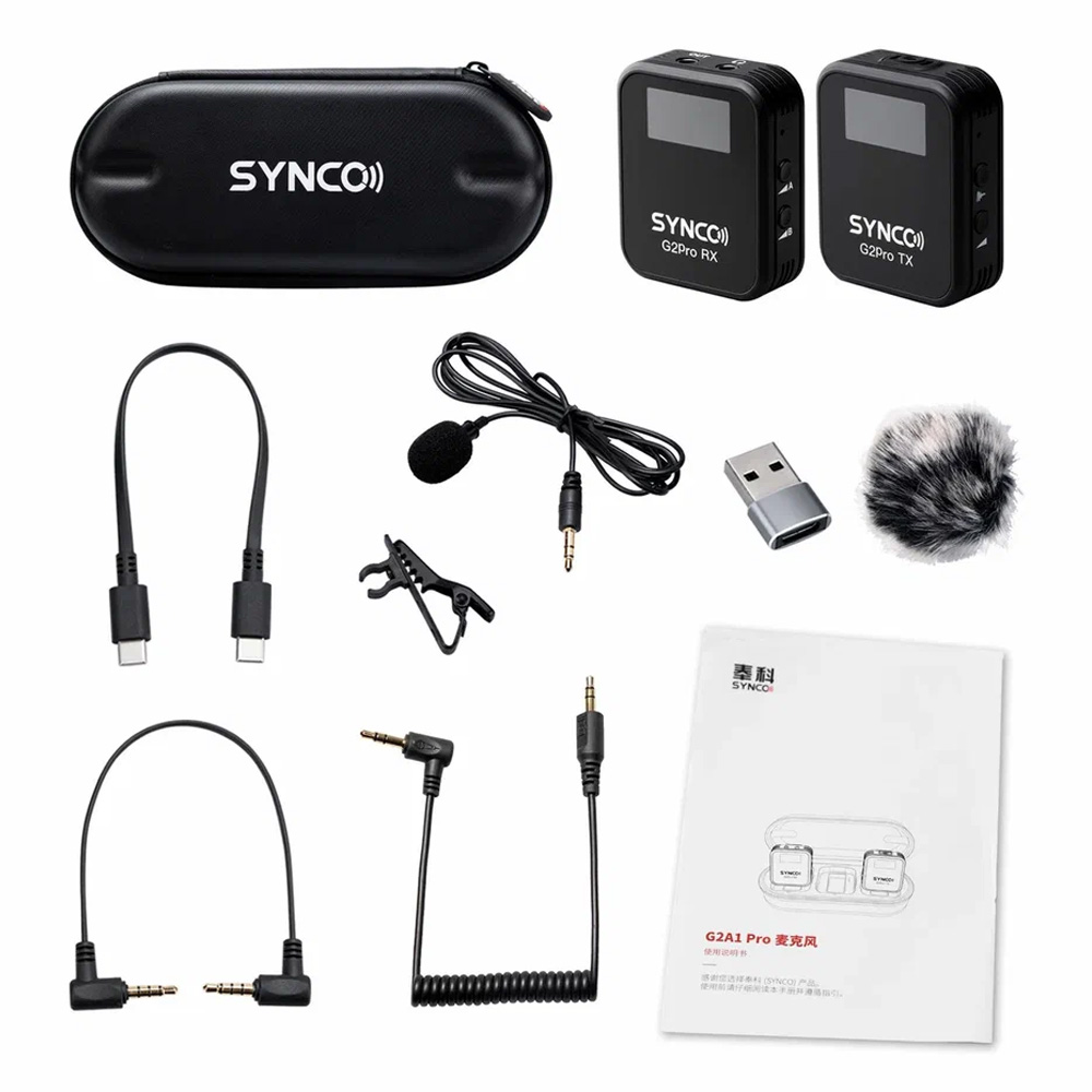 The Synco G2 A1 Pro is a long-range wireless microphone with a range of 200 meters. It boasts the same compact form factor and features as the original G2, with innovative functions including one-button noise reduction, gain adjustment on both TX and RX, safe channel mode, universal Type-C digital output, digital sound monitoring, and more. It is universally compatible with cameras, smartphones, computers, speakers, etc. With the included G2 Pro charging device, it offers a total of 24 hours of recording time for creating videos, interviews, live broadcasts, and more.