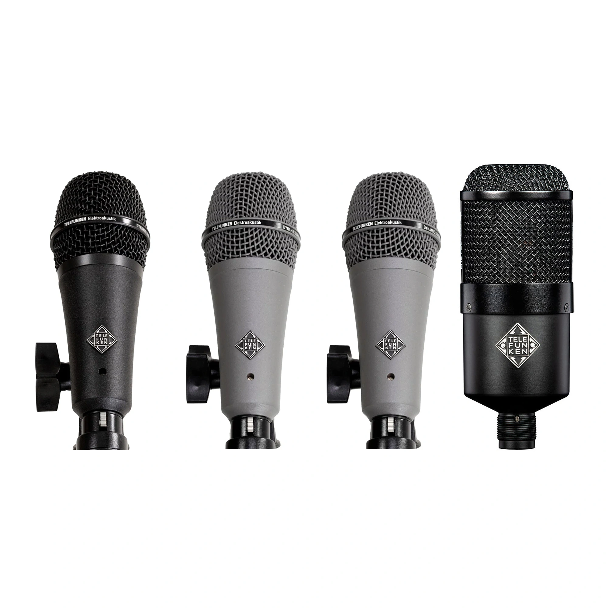Telefunken has combined three unique voices - M80-SHB, M81-SH, and M82, creating dynamic microphone sets for drum miking DD4 and DD5. M82 is designed for kick drums, M81-SH is for toms, and M80-SHB is best suited for snare drums. The versatility and highest sound quality, awarded with a TEC Award, allow these microphone sets to be used in live concerts as well as recording studios.