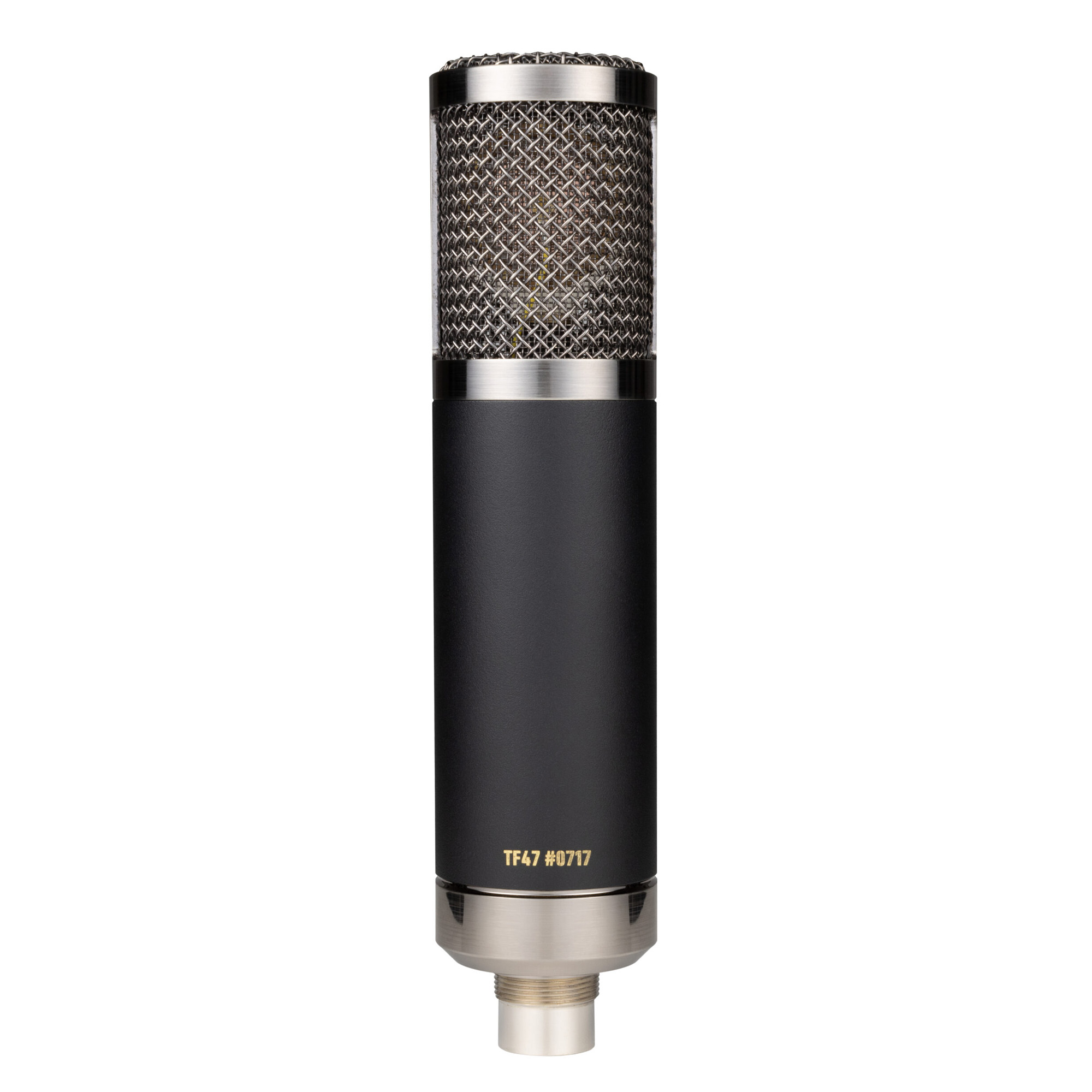 Part of the Telefunken Alchemy large-diaphragm tube condenser microphone series, the TF47 model features a fully brass dual-sided capsule in the classic K47 style with a center termination, a new vintage-style 5840W vacuum tube, and a custom-made historically accurate BV8 transformer that gives the microphone its distinctive warm and rich sound reminiscent of the U47. The frequency response curve is characterized by a gradual increase in presence level in the mid-range frequencies, starting at around 500 Hz and peaking at approximately 3 dB at 4 kHz, then quickly decreasing to provide pleasant articulation at a high level, which often helps vocals and guitars take center stage in the mix.