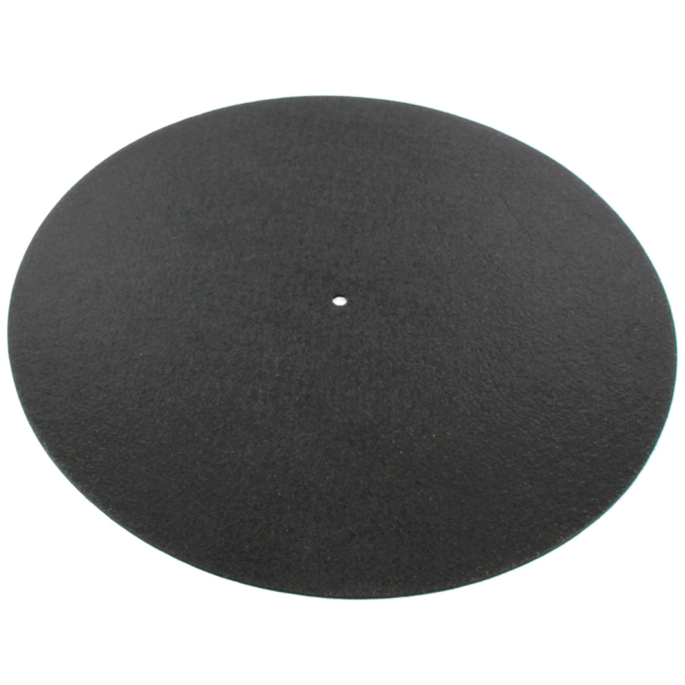 The mat is made from a combination of felt mixed with carbon fibers. The felt softens the record and dampens vibrations caused by acoustic feedback from speakers and other external vibrations.