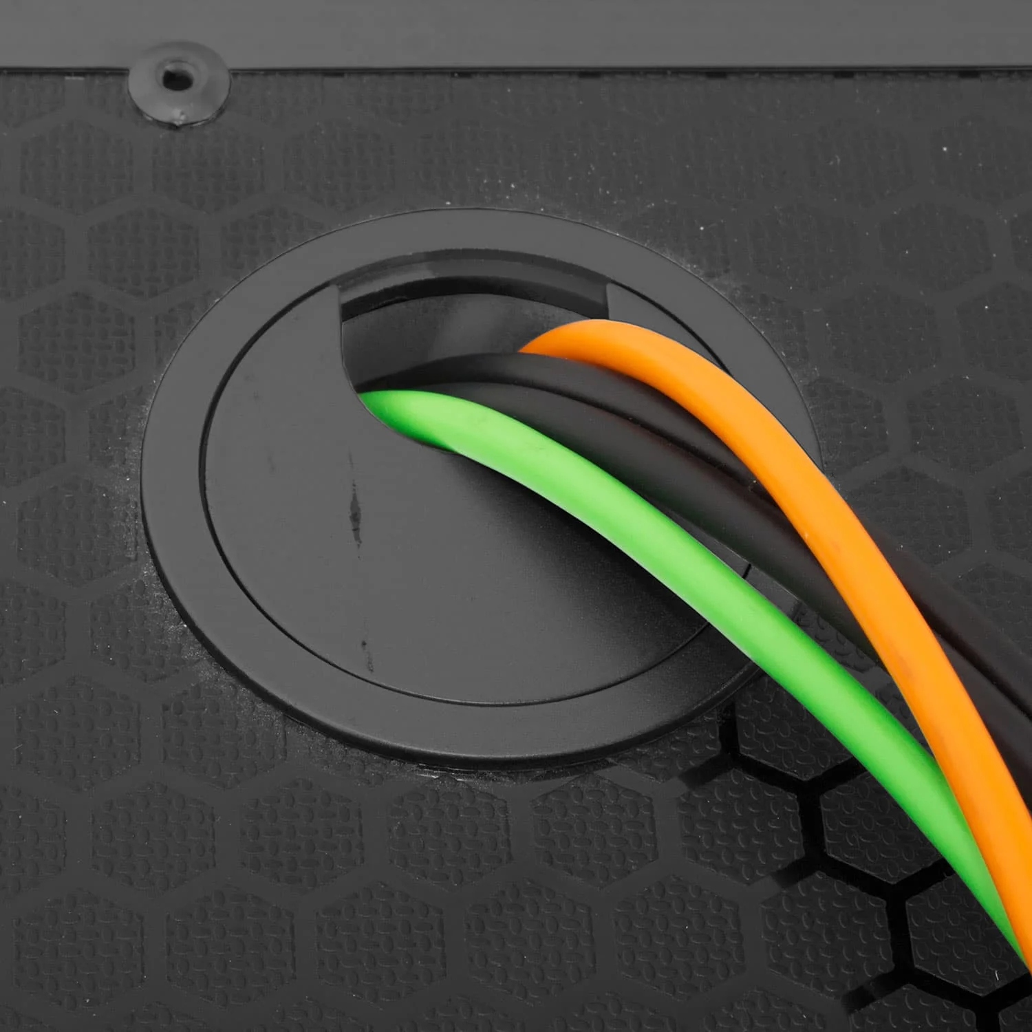 UDG Ultimate Fold Out DJ Table is perfect companion piece for the DJ who likes to go completely modular. Use it for a home studio set up or on stage. Constructed from sturdy 9mm thick plywood, the outer sides are laminated in a black/white finish with a honeycomb/hexagonal "Stage Grip" pattern. It's features edge roller wheels on one side for convenient transport and heavy-duty spring-loaded handles for secure lifting and loading.
