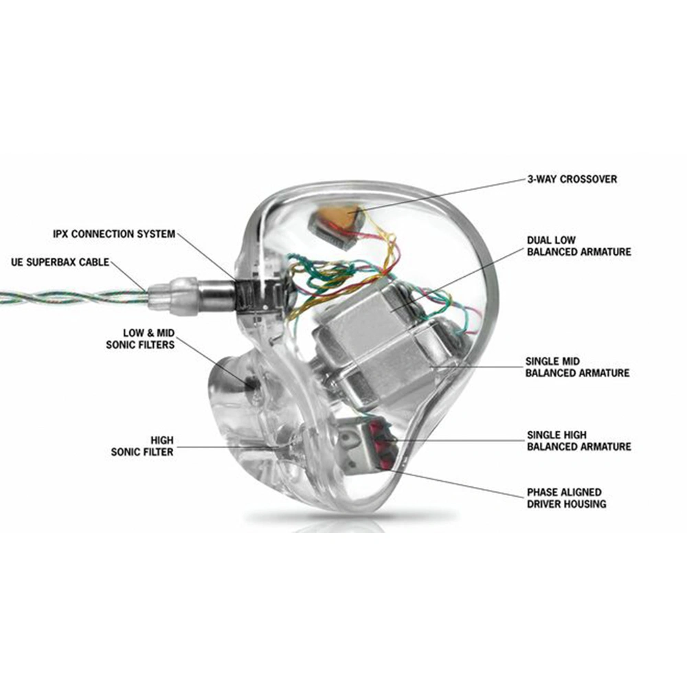 The Ultimate Ears UE 11 Pro custom headphones feature four balanced armature drivers.