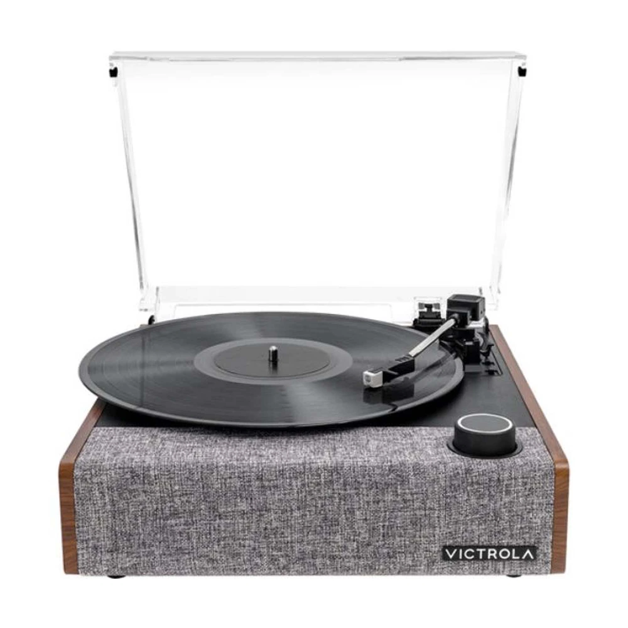 The Victrola Eastwood II vinyl player builds on the quality and functionality of the acclaimed original Eastwood record player with an updated vintage design and all-new materials to enhance functionality and style. The Eastwood II features a simplified user interface, allowing you to control your music from a single, illuminated knob, whether you’re spinning vinyl on the 3-speed turntable or streaming via Bluetooth. Its built-in, custom-tuned speakers are now housed behind a soft fabric, giving the Eastwood II a modern, minimalist aesthetic.