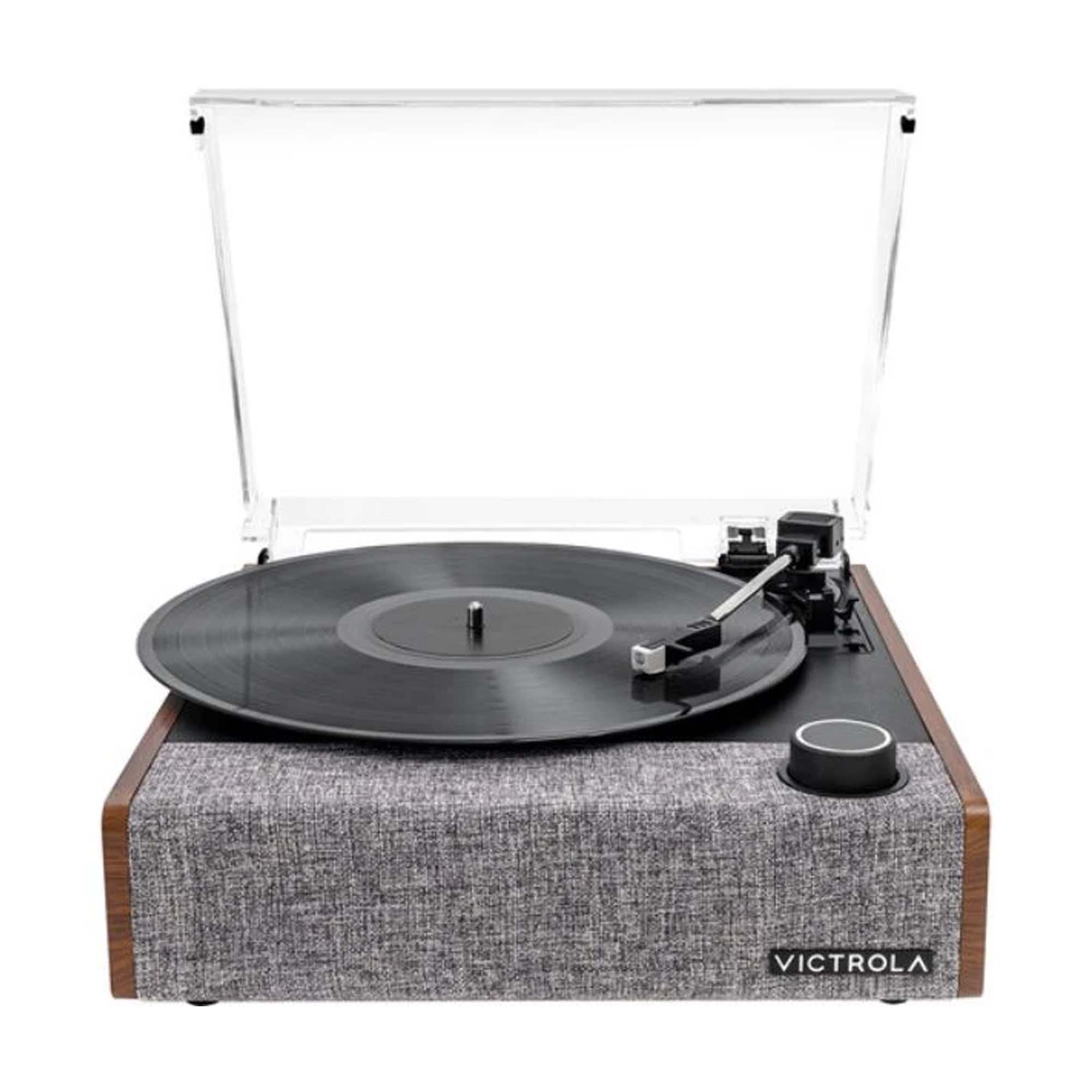 3-speed (33 1/3, 45, 78 RPM) record player. Built-in, custom tuned speakers bring best-in-class room-filling sound. Removable dust cover keeps your records dirt and grime free. Easily stream music from your smart device, no messy wires.
