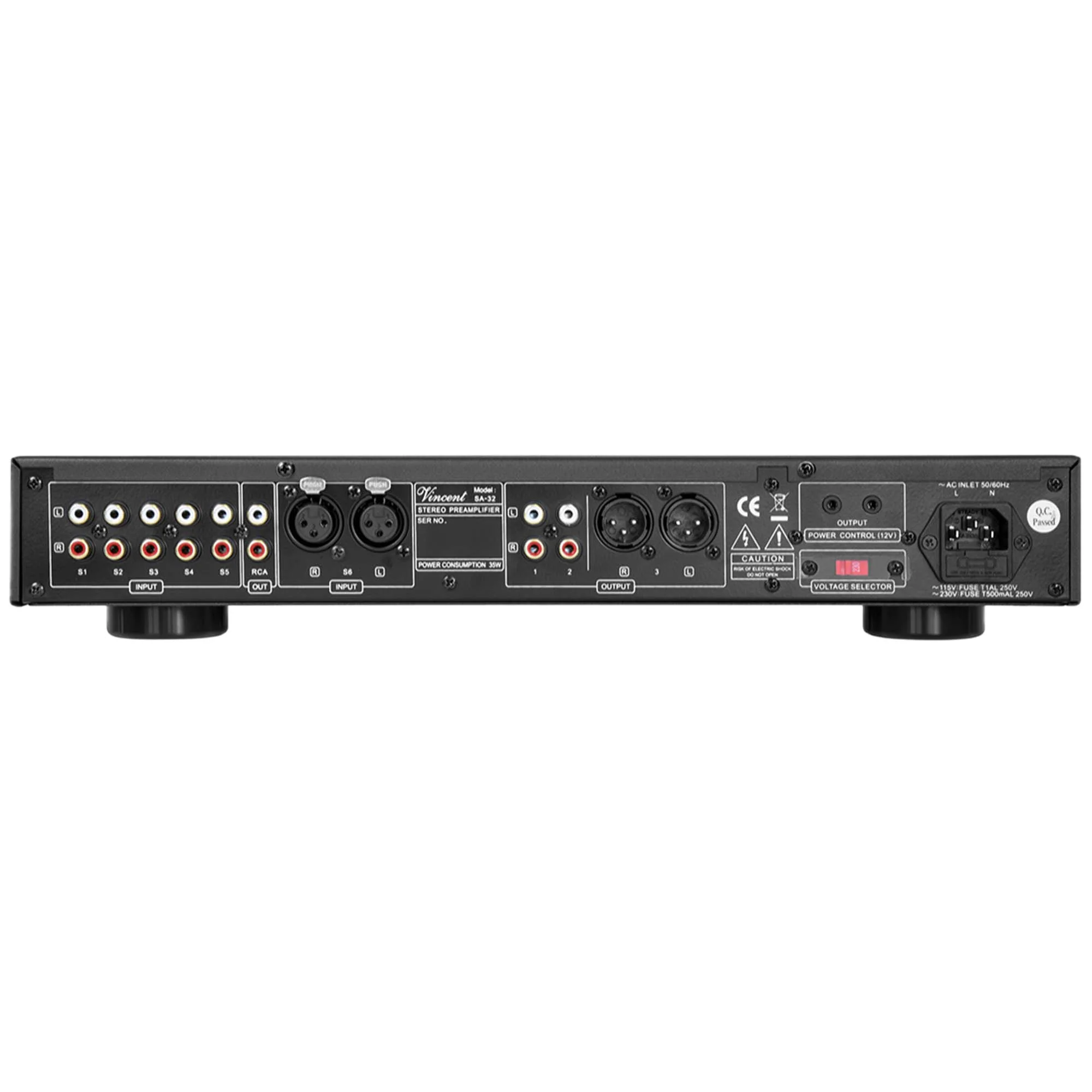 The basic design largely repeats the construction of its predecessor Vincent SA-31. However, some new options have been added to the preamplifier, its circuits have been improved, and the preamplifier has been completely rebuilt, including increasing the size of the enclosure. Another visible change is a different set of connectors. With Vincent SA-32, along with the usual RCA inputs and outputs, there are also balanced terminals.