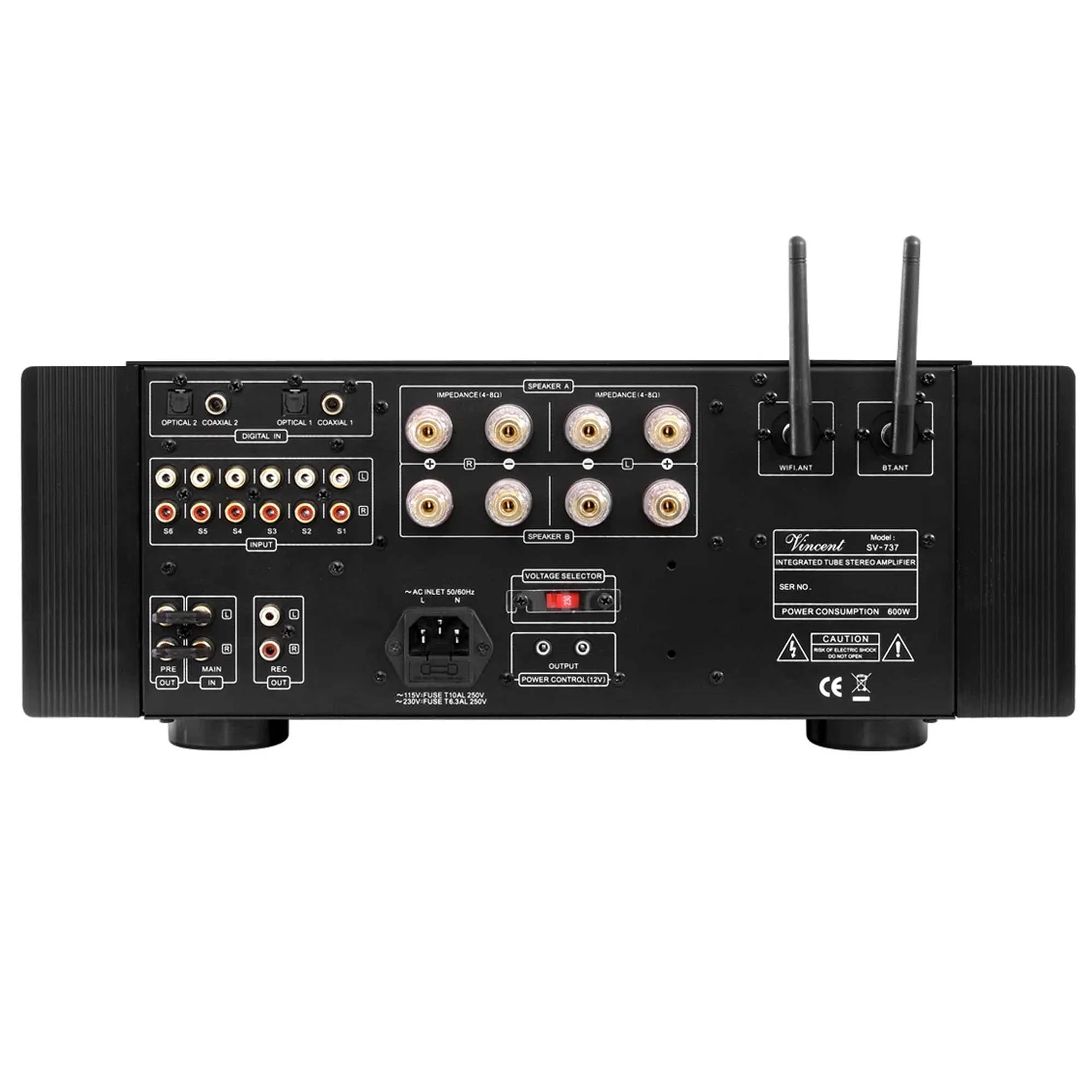 The Tube Line series by Vincent has been expanded with the new hybrid integrated amplifier Vincent SV-737. Its main feature compared to other models in the line is the ability to connect via WiFi and Bluetooth. Connecting the Vincent SV-737 to your home network via WiFi means it can support streaming and, for example, play music files stored on a NAS.