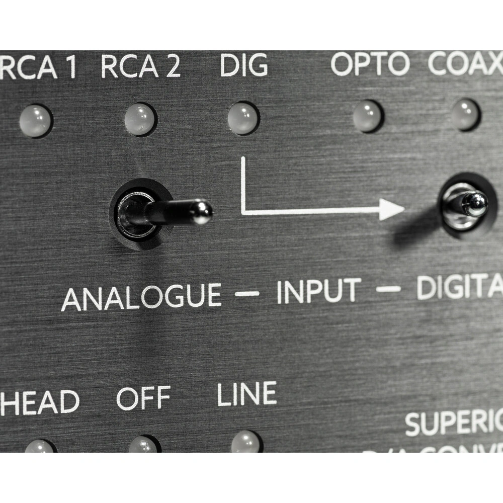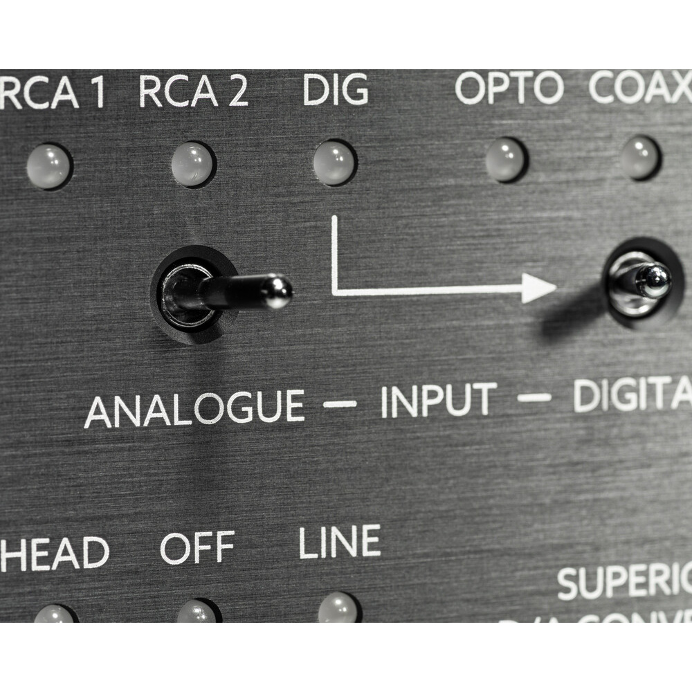 Additional circuits protect the devices from direct current, overload, or overvoltage and delay the power-on process to safeguard the headphones. All components are meticulously assembled by hand and housed in a sleek black anodized aluminum enclosure with a millimeter-thick front panel.