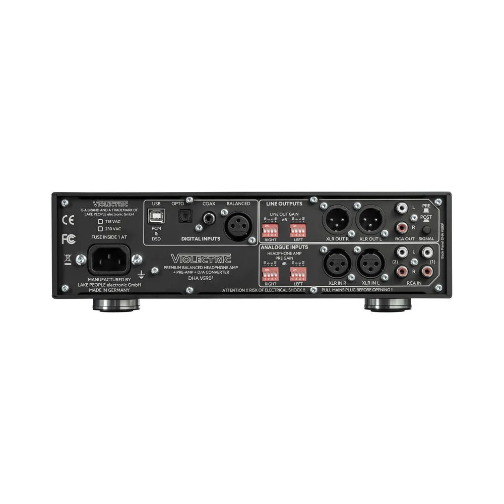 The DHA V590 V2 PRO is an upgraded device in the Violectric lineup, offering the capabilities of a modern digital-to-analog converter, a balanced headphone amplifier, and a preamplifier function. The D/A converter is a new development and includes two 32-bit converters per channel.