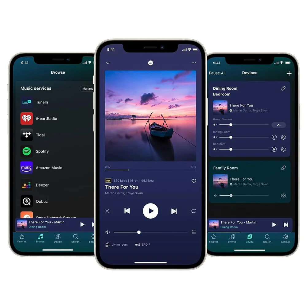 Enjoy streaming services with the WiiM Home app. Forget switching between different apps; this universal interface will connect you to popular music streaming services like Spotify, iHeartRadio, Tidal, Amazon Music, Qobuz, Napster, Pandora, TuneIn, Deezer, and more.