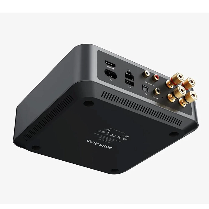 The compact design of the WiiM network integrated amplifier allows it to be placed conveniently anywhere. Inside its small aluminum chassis are premium components that make up an innovative design with clean, distortion-free sound amplification. Despite its compact size, the amplifier's output power is 60 W per channel at 8 Ohms and 120 W per channel at 4 Ohms. Additionally, the amplifier runs cool thanks to a specially designed heat sink. WiiM Amp will turn any passive speakers – floor-standing, in-wall, or bookshelf – into full-fledged intelligent audio systems.