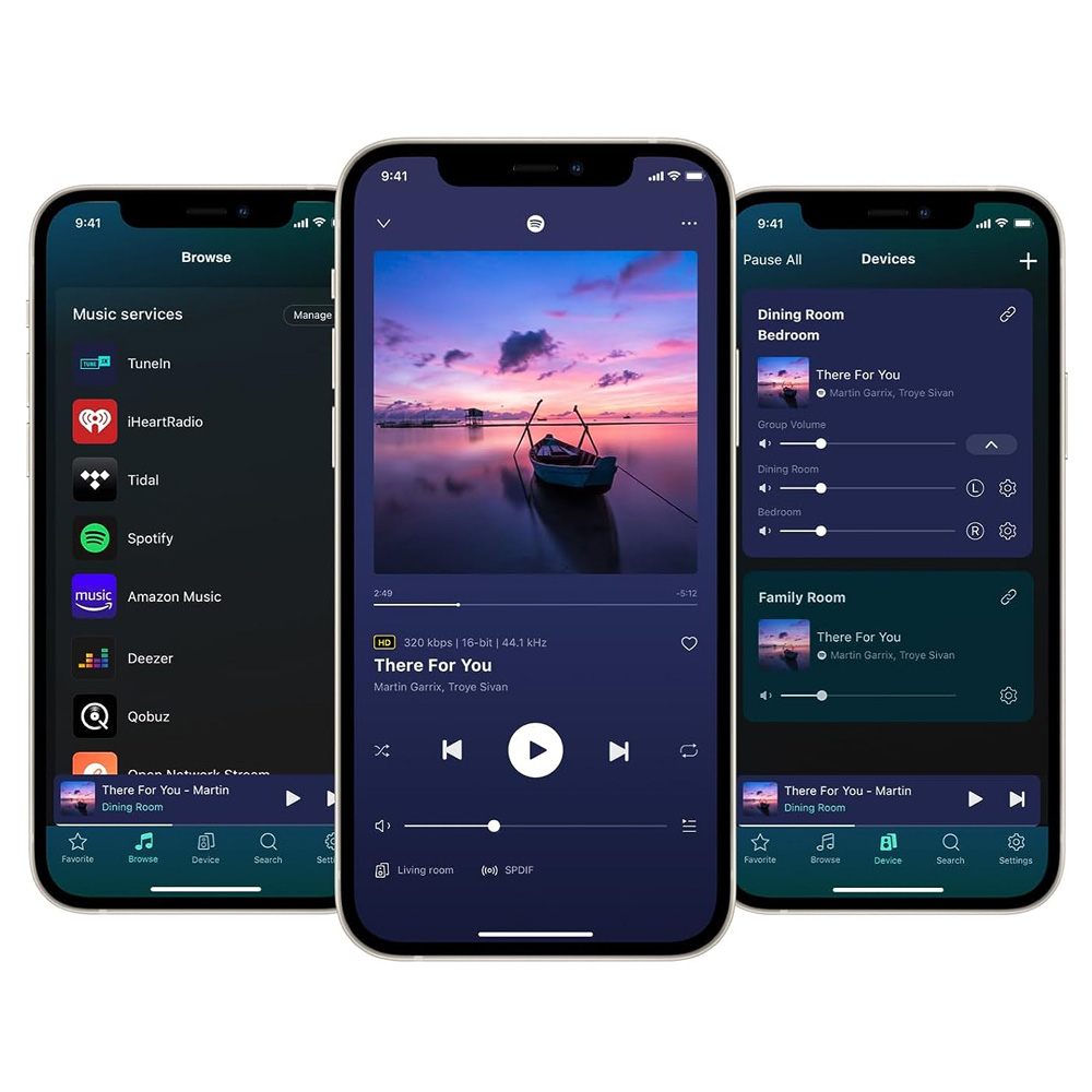 Access streaming services with the WiiM Home app. Forget about switching between different apps; this universal interface will connect you to the most popular music streaming services like Spotify, iHeartRadio, Tidal, Amazon Music, Qobuz, Napster, Pandora, TuneIn, Deezer, and more.