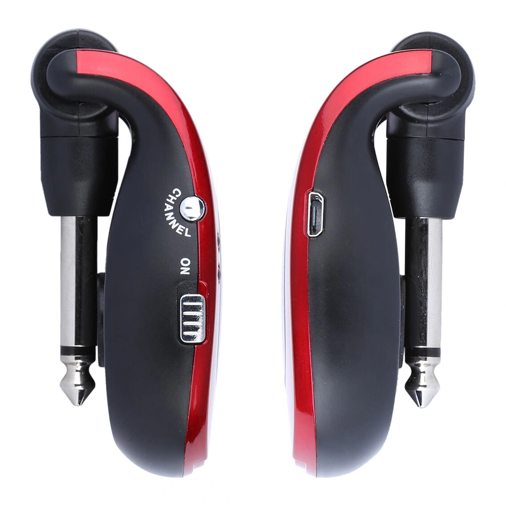 The system is comprised of a transmitter unit, which connects to your audio source (typically an electric guitar or bass); and a receiver, which is connected to an amplifier, effect pedal/pedalboard, DI box or audio interface.