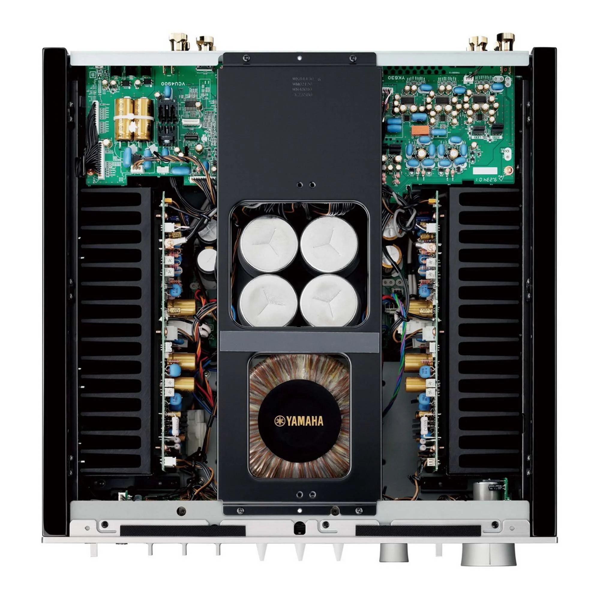 The circuit uses PP film audio capacitors, and its architecture is fully balanced, from the XLR input to the solid brass screw connectors of the speaker cable. The specifications, among other things, state that the Yamaha A-S2200's damping factor was a value of 250 or greater.