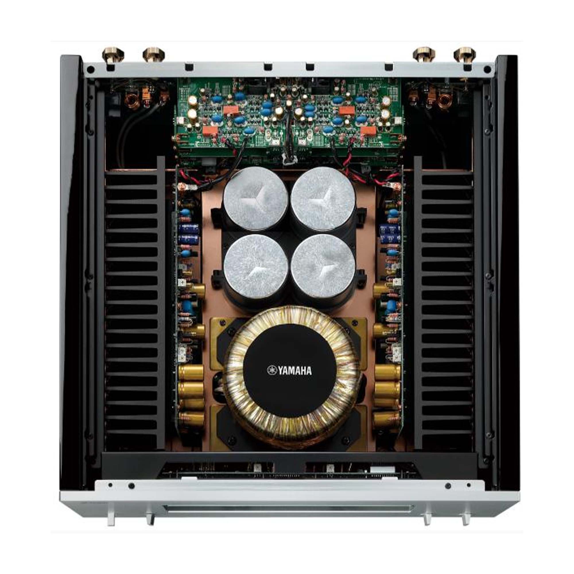 The amplifier is equipped with balanced and unbalanced inputs. Both stereo channels in the Yamaha M-5000 have a fully symmetrical layout, which ensures reliable stereo channel distribution. At the same time, the amplifier circuit implements the concept of reducing signal transmission paths, which further reduces noise and distortion.