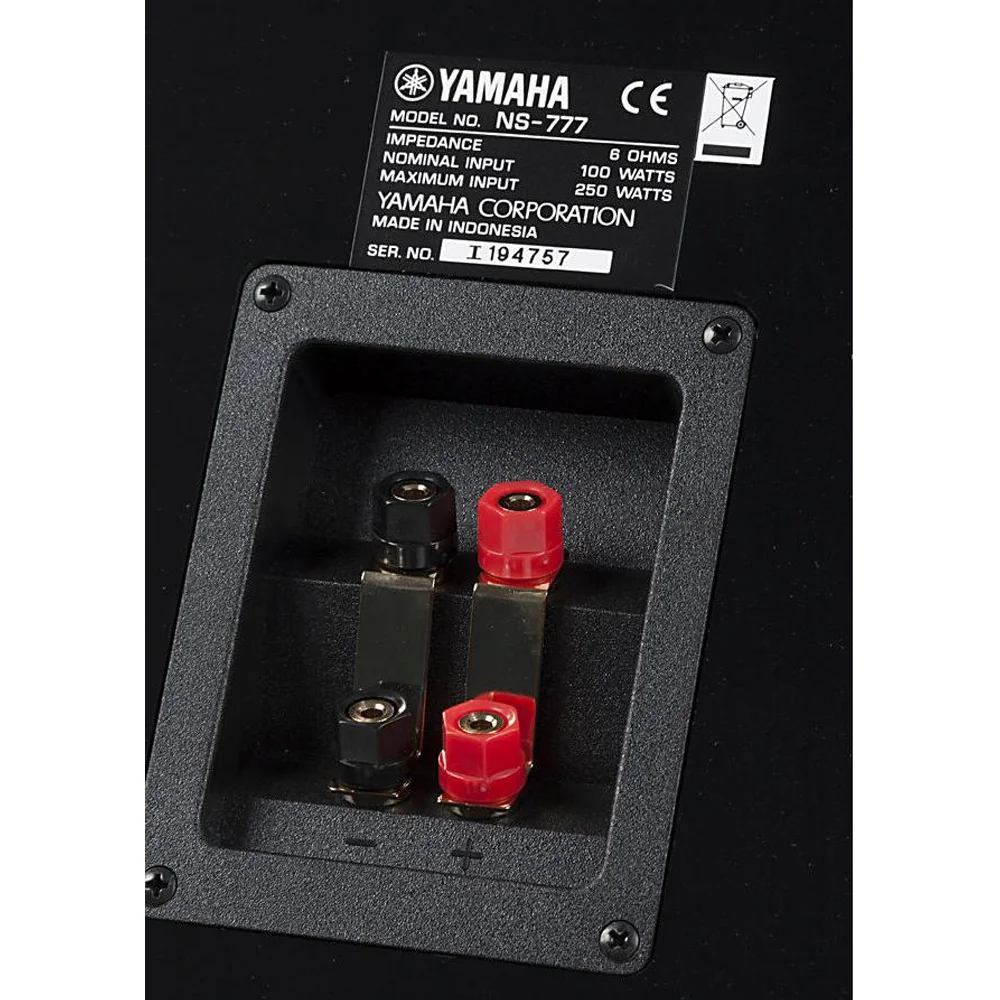 Yamaha NS-777 is a floor-standing speaker with a 3-way Bass-Reflex Tower acoustic system. The EF series (Elliptical Form) features Waveguide high/midrange horns, midrange and low-frequency drivers with Yamaha PMD (Polymer-injected Mica Diaphragm) Technology. The internal wiring uses Monster Cable speaker cables for maximum enjoyment of digital sound in a home theater or stereo system. The elegant cabinets have a traditional grand piano finish in Piano Black.