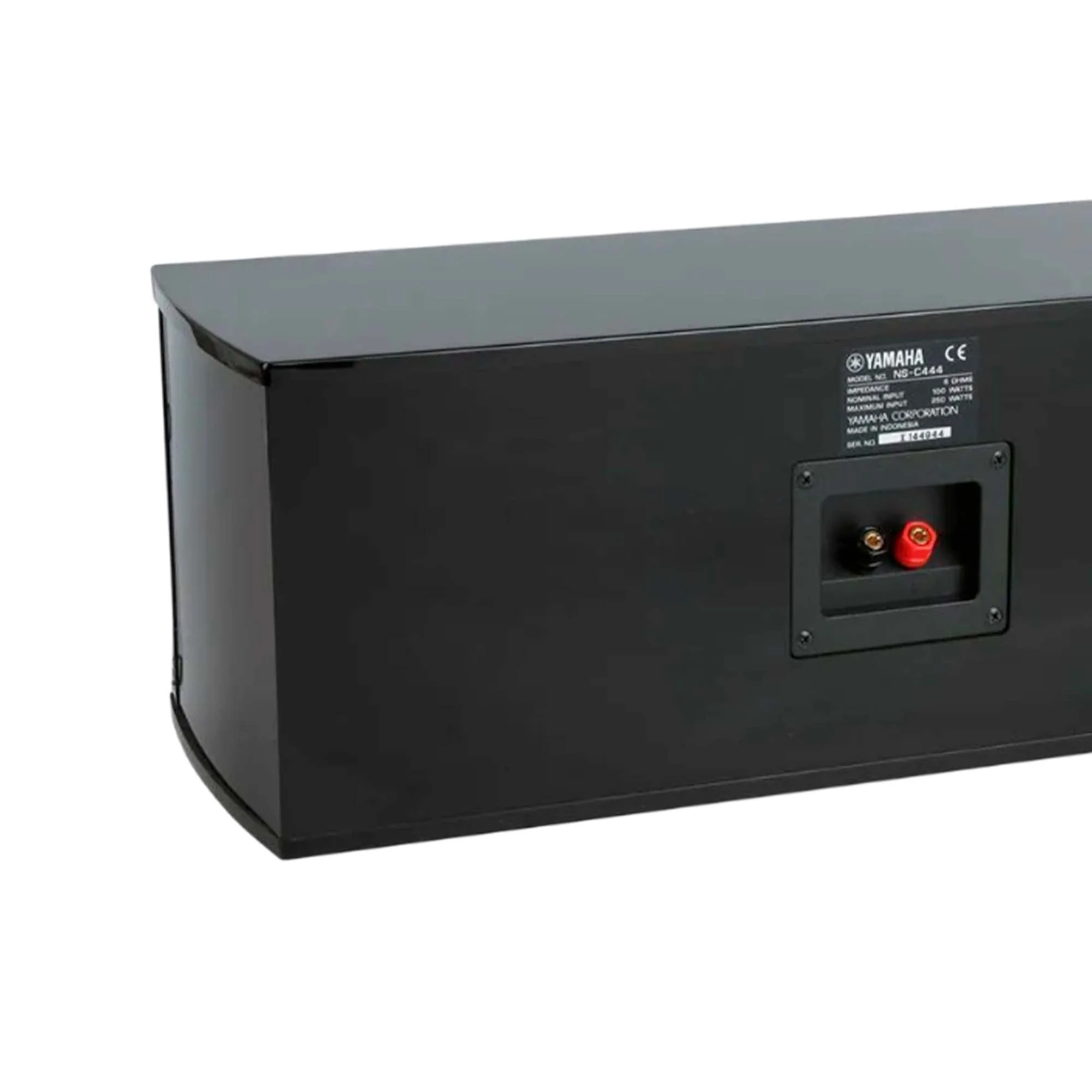 The NS-C444 is housed in a sturdy black painted MDF cabinet. The speaker cable is connected using two labeled screw terminals located in a recessed compartment on the back of the speaker. Additionally, this system is supplied with a protective decorative frame covered in black acoustic fabric.