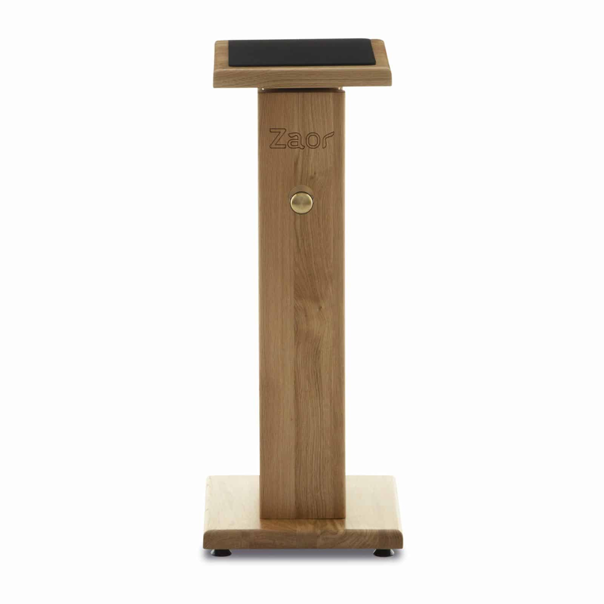 Another important feature is that the materials used to make the stand do not resonate, unlike most metal stands (which ring at around 800 Hz). The Zaor stand is made of oak (or ash) wood and plywood, which has virtually no resonances of its own, and it has an AERstop coating on the adjustable top platform.