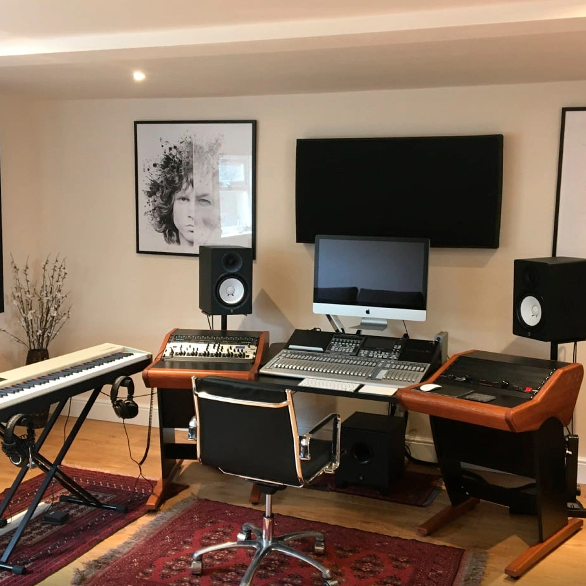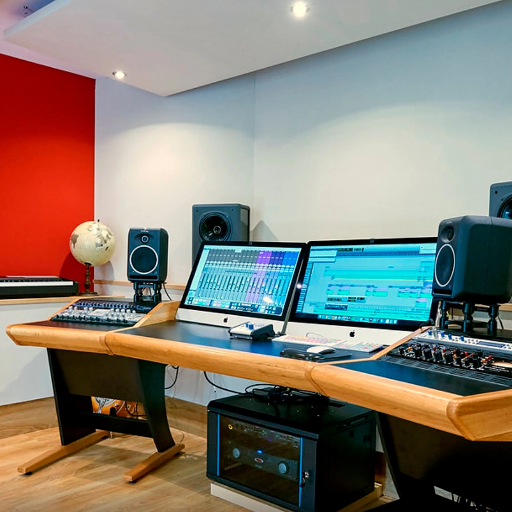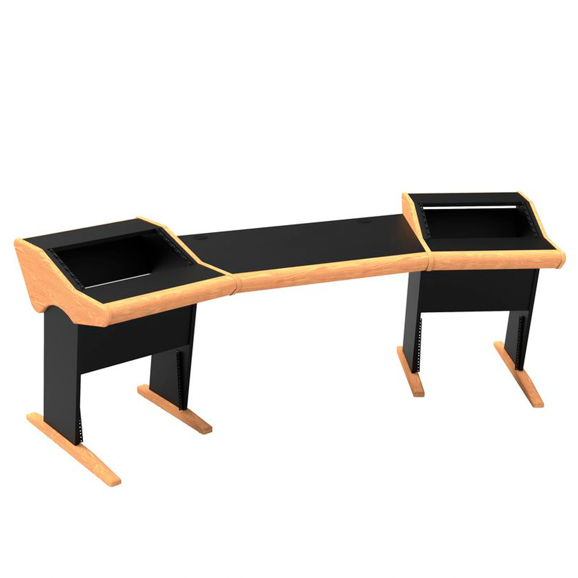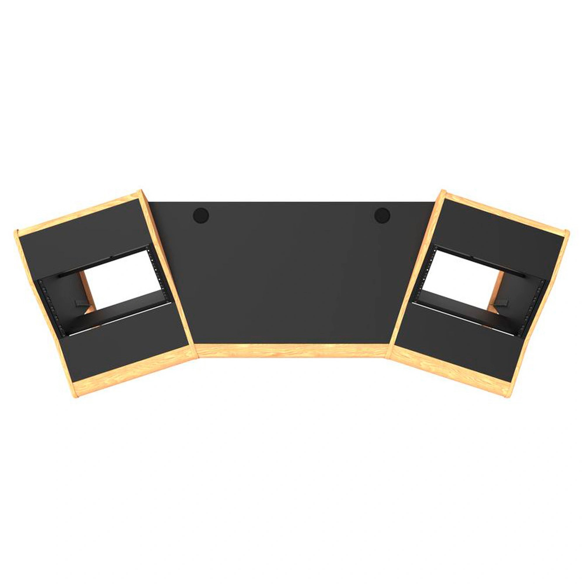 The Onda desk perfectly meets the needs of hybrid studios. Its central area provides space for placing DAW controllers, desktop interfaces, and synthesizers, while leaving room for a keyboard and mouse. The slanted stands on the sides provide enough space for your preamps, compressors, and equalizers. The equipment is easily accessible but does not interfere with the functioning of monitors, without compromising the acoustic characteristics of your studio.