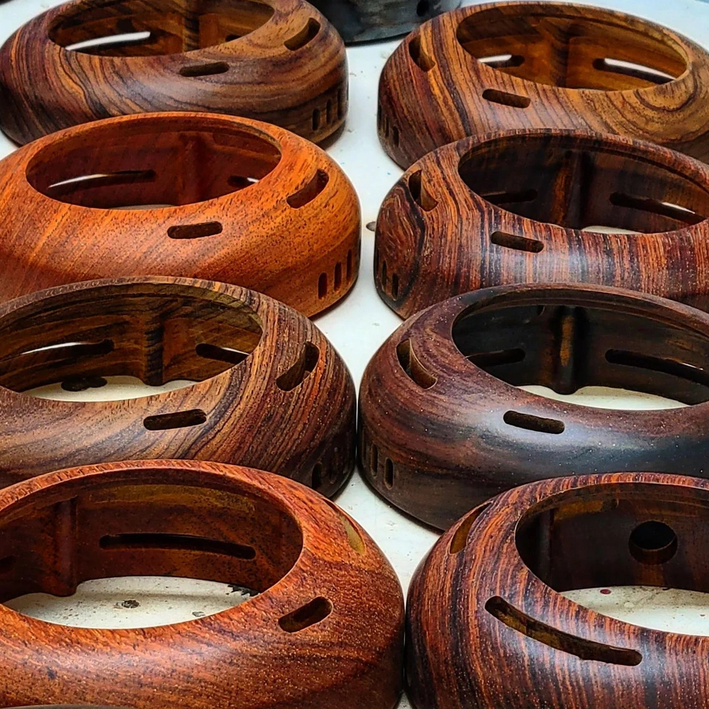 When finishing ZMF headphones, the least caustic options available are used. The primary material used during processing is Osmo wax for porous wood, consisting of natural seed oils and waxes. However, each set is individually matched based on the Wood's character. The goal is to ensure that the wood's character shines through in the finishing of each item. Wood possesses unique material qualities having lived its life before being reconstructed as ZMF headphones. Properly prepared and cared for, wooden cups will age with their user, ultimately telling their story alongside their own.