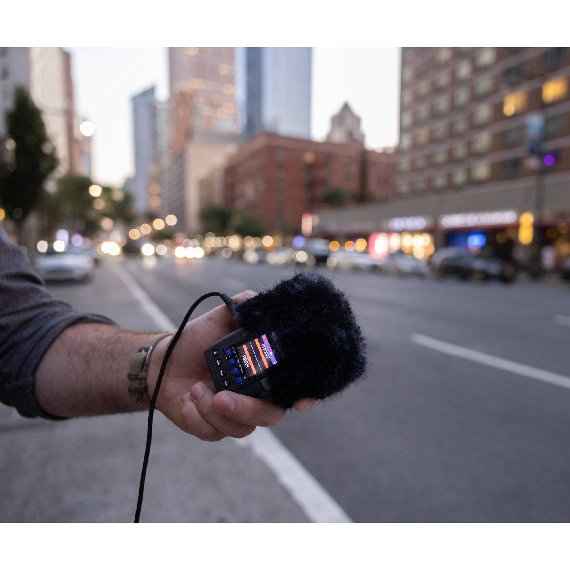 Wind protection, specifically designed for the H2essential recorder, will protect your recordings from wind when recording outdoors. Thanks to the unique wind protection design, you will retain access to the control buttons when installed on the recorder.