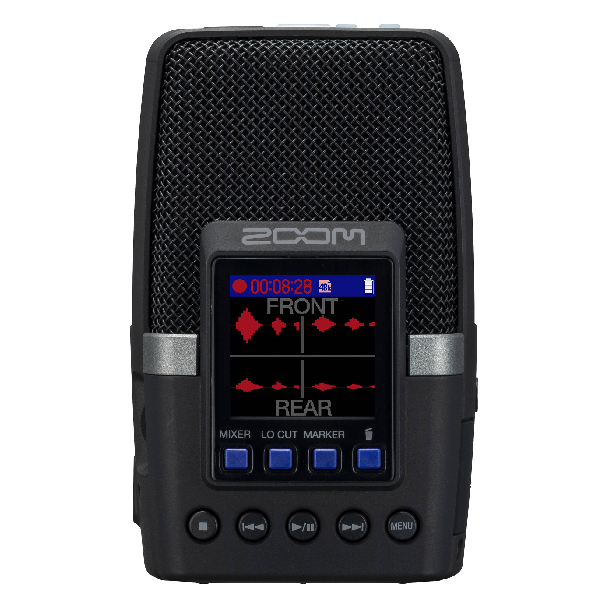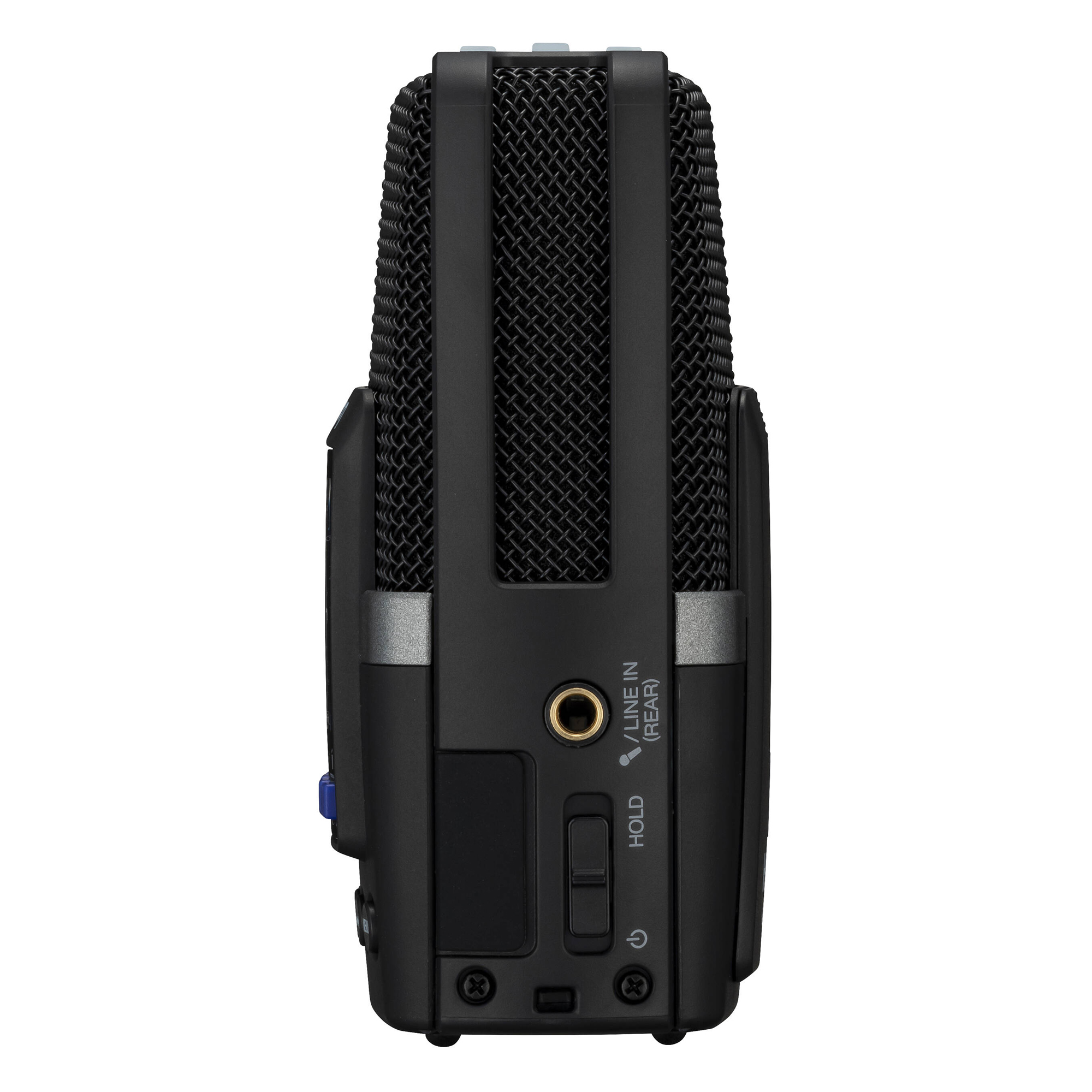 - Simultaneous use of front and back microphones in 120-degree stereo allows you to capture all group members, recording wide immersive audio.