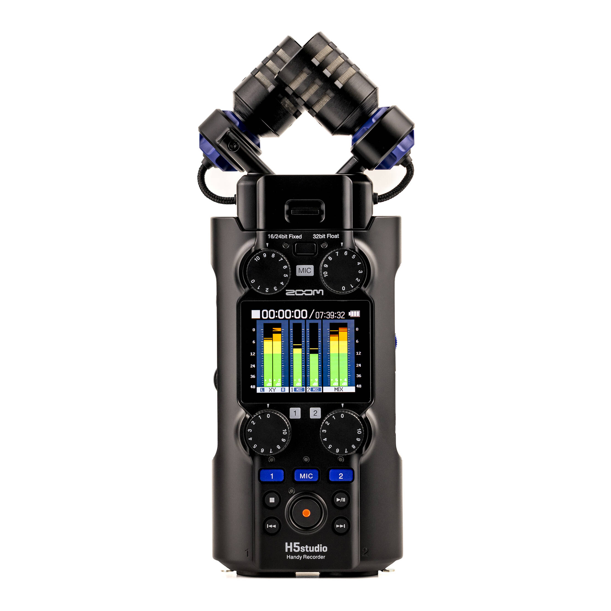 The large 19.4 mm microphones in H5Studio provide outstanding sound quality with a maximum sound pressure level of 140 dB, stunning frequency response, and a dynamic range of 123 dB.