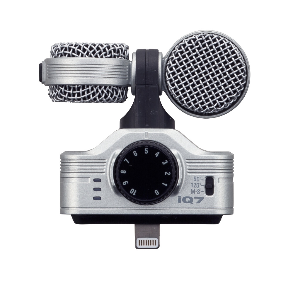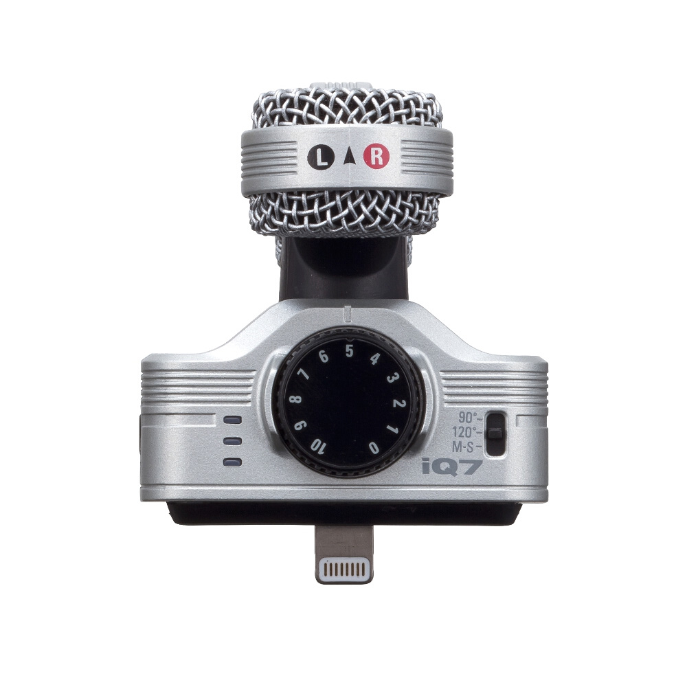 The iQ7 stereo microphone offers advanced features that allow you to create extraordinary audio recordings anywhere, anytime. The large front microphone gain knob allows you to easily adjust the optimal gain level, while the three-segment indicator ensures that the recorded sound is clean, clear, without any overload.